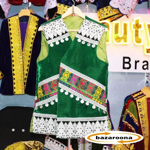 Amazing authentic traditional men's green velvet vest with heavy silver braided embroidery, . These items are traditionally worn by the men of the Pashtun tribe of Afghanistan on special occasions. these vests are avaliable in green , black , blue , maroon, Red velvet fabric with matching silver or golden embroidory