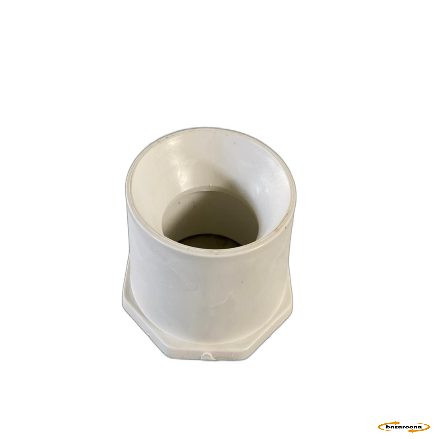 نصب شده در یک سیستم لوله کشی عمودی PVC سفید DWV برای انتقال صاف از یک خط انشعاب افقی 2 اینچی به یک خط زهکشی لوله عمودی 4 اینچی.