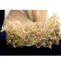 کیف دستی زنانه با دیزاین مهره دوزی رنگ سفید و زنجیرگ طلایی