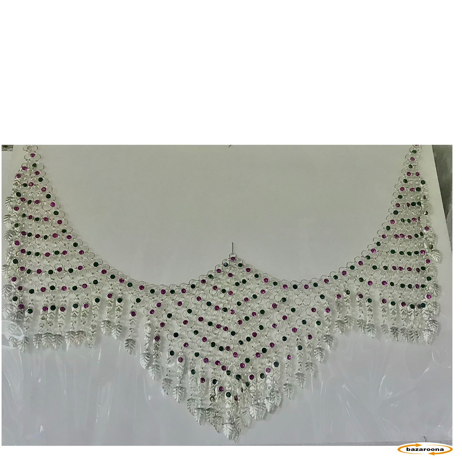 این کمربند از فلز سفید (سلور) ساخته شده و نگینهای سرخ و سبز روی آن نصب شدهاند که بسیار زیبا به نظر میرسد. اینگونه کمربندها در کنار لباسهای افغانی "گند" استفاده میشوند و به لباس جلوهای خاص و زیبا میبخشند.