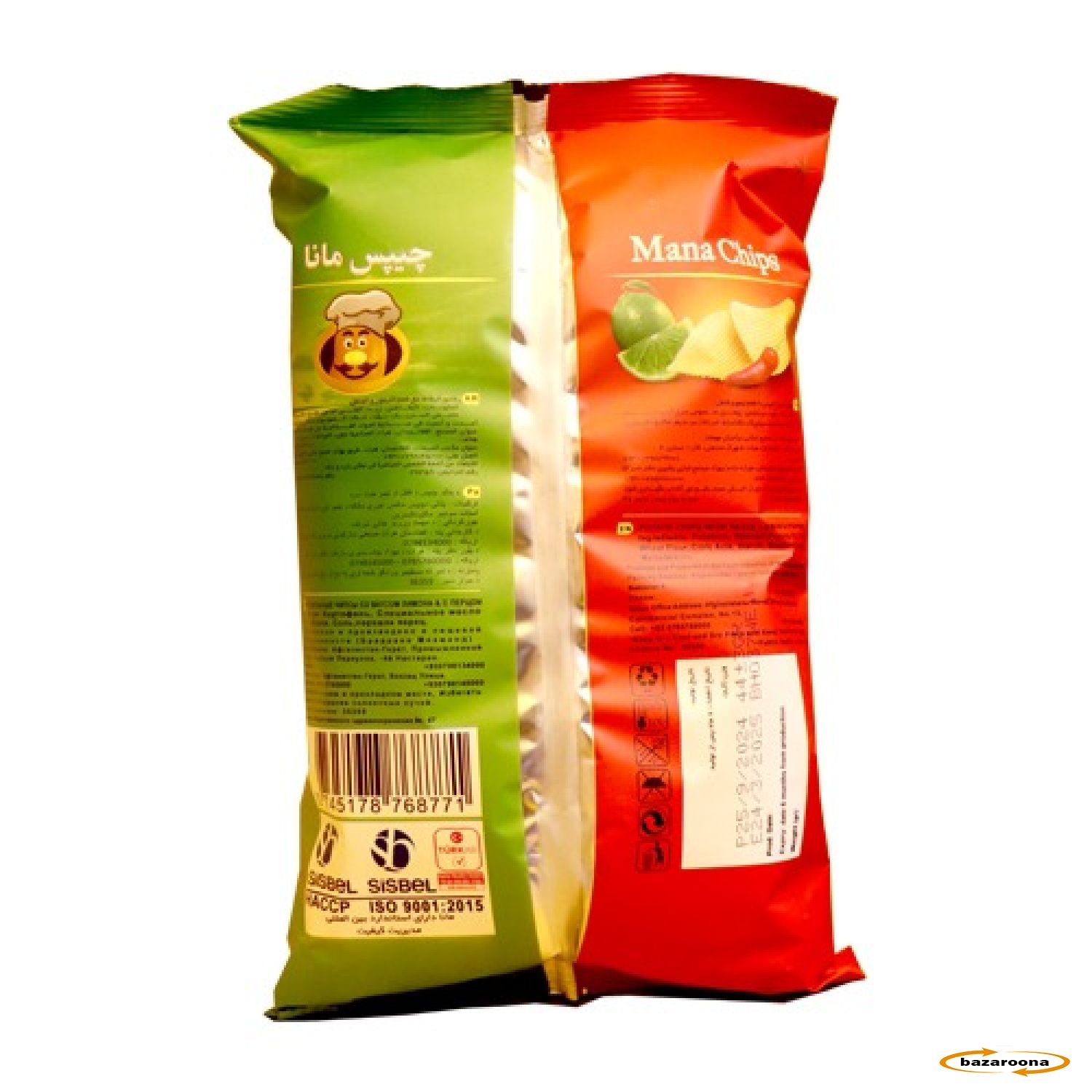 د مانا لیمو چپس یو تازه او خوندور خوراک دی چې له لوړ کیفیت لرونکو کچالو جوړ شوی او د لیمو ترش او تازه خوند ورکول شوی دی. دا محصول د هغو کسانو لپاره غوره دی چې په ځانګړو او خوندورو خوندونو مینه لري. مانا د خپلو لوړو کیفیتي خامو موادو او د حفظ الصحې تولیدي میتودونو په مرسته دا ځانګړې لیمو چپس وړاندې کوي چې د ورځنیو خوراکونو او کورنیو یا ملګرو غونډو لپاره غوره انتخاب دی.