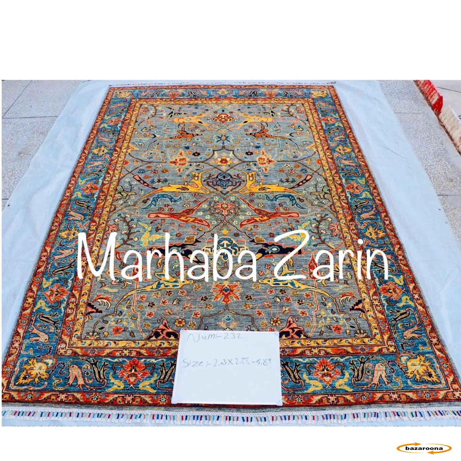 اندازه فرش، 2.85 در 5.84 متر، نشان میدهد که این قطعه بزرگ است و برای اتاقهای وسیع یا سالنها مناسب است.