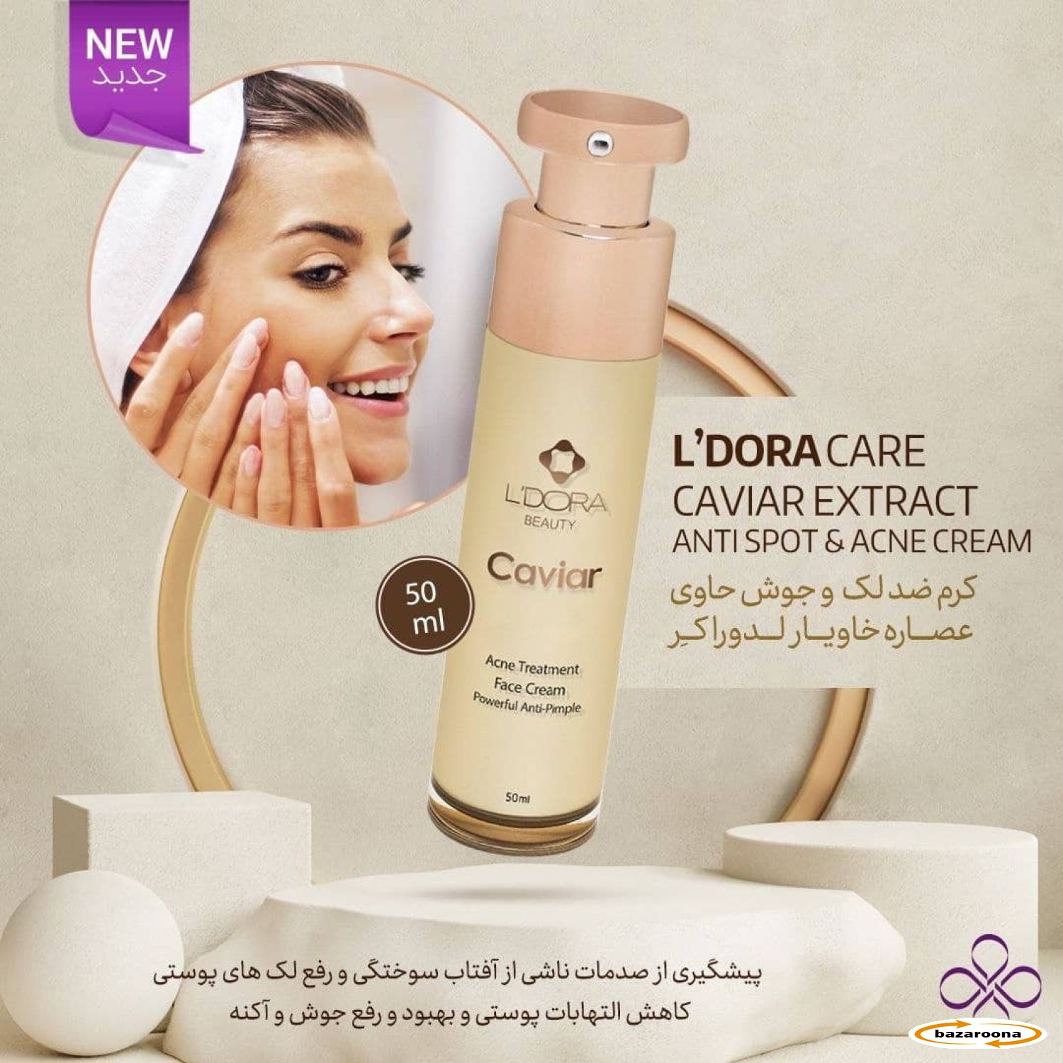 This professional product with large amounts of caviar extract and sodium hyaluronate, in addition to increasing collagen synthesis, deeply hydrates the skin. Caviar extract is the most effective and important substance used in this serum, as it has antioxidant properties and protects the skin against harmful rays of the sun and environmental pollutants. L’dora facial serum, due to its light texture, is quickly absorbed by the skin, penetrates into its deep layers, and significantly helps maintain the elasticity, hydration, softness, and freshness of the skin. Niacin amide (vitamin B3), another active ingredient in this product, also plays an important role in controlling fat and reducing open skin pores.