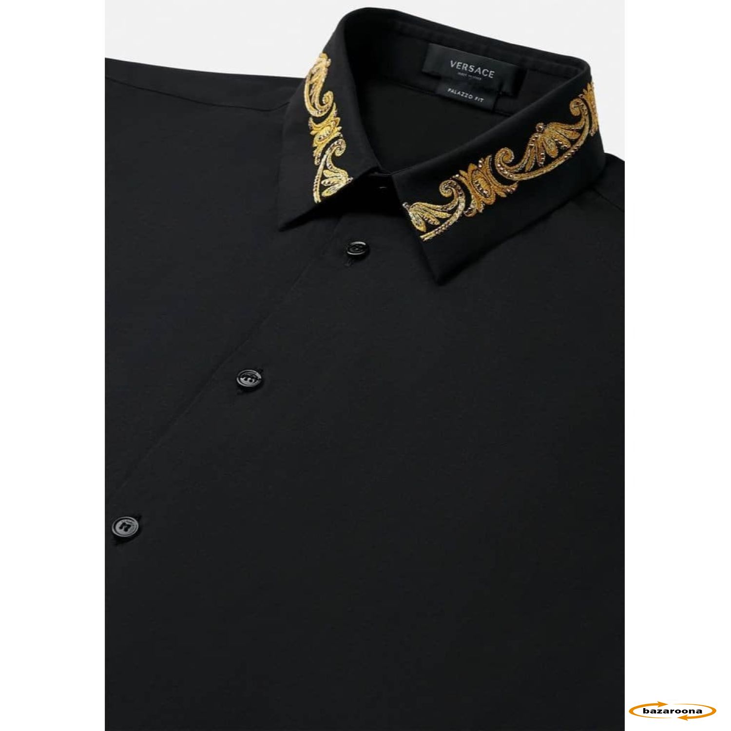 This is a men's cloth with golden embroidery on the collar, made from 100% cotton.