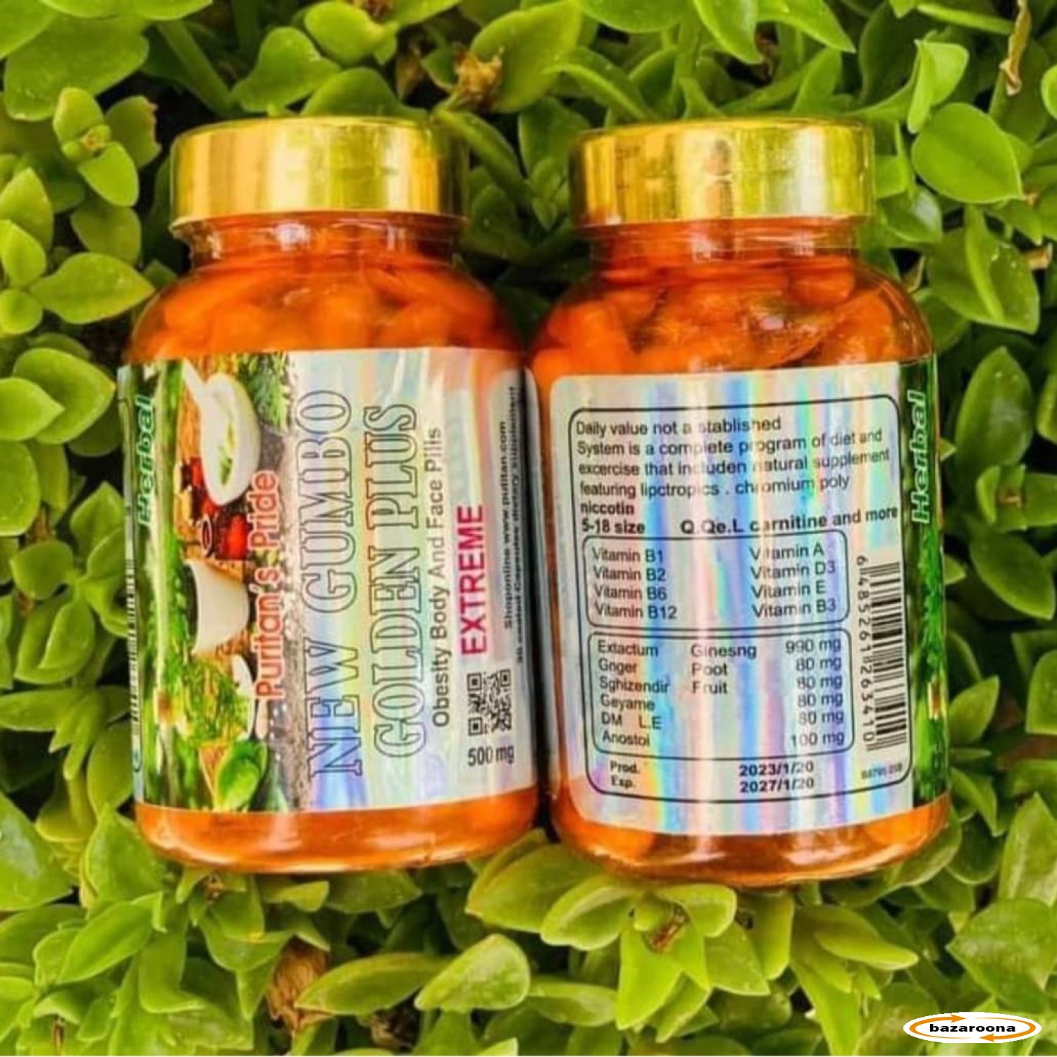 "NEW GUMBO GOLDEN PLUS" is a herbal supplement designed to support weight loss and body shaping. It includes a blend of natural ingredients such as ginseng, ginger root, and other vitamins and minerals. This product is formulated to enhance metabolism, reduce appetite, and improve overall energy levels, contributing to a healthier body and appearance.