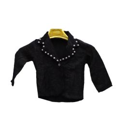 د ښځو جامه چې د یخن او لستوڼو ډیزاین لري په تیاره تور رنګ کې.