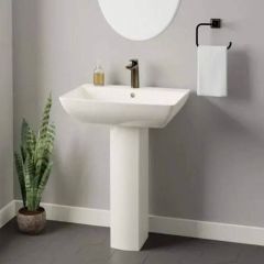 عصري تشناب د لاسي مينځلو ځای، د بشپړ ولاړ پايې سره، مربع ډيزاين، يو نل سوراخ، له سپين سیرامیک څخه جوړ شوی.