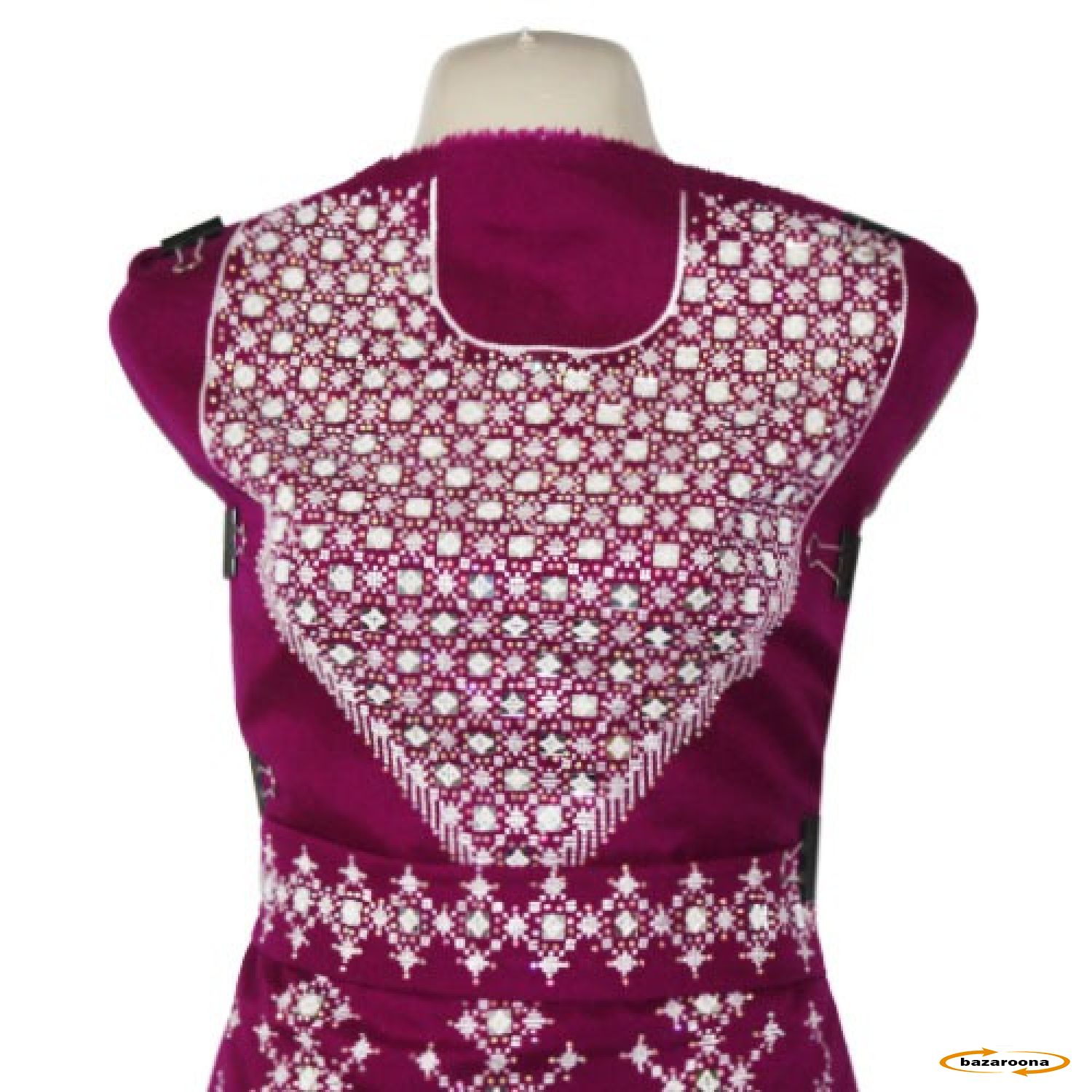 The Afghan Kameez is a loose-fitting, long tunic-style dress that is the main component of Afghan traditional attire. It is typically made from colorful and embellished fabrics such as silk, velvet, or brocade. The Kameez is usually adorned with intricate embroidery, mirror work, beadwork, and sometimes lacework.