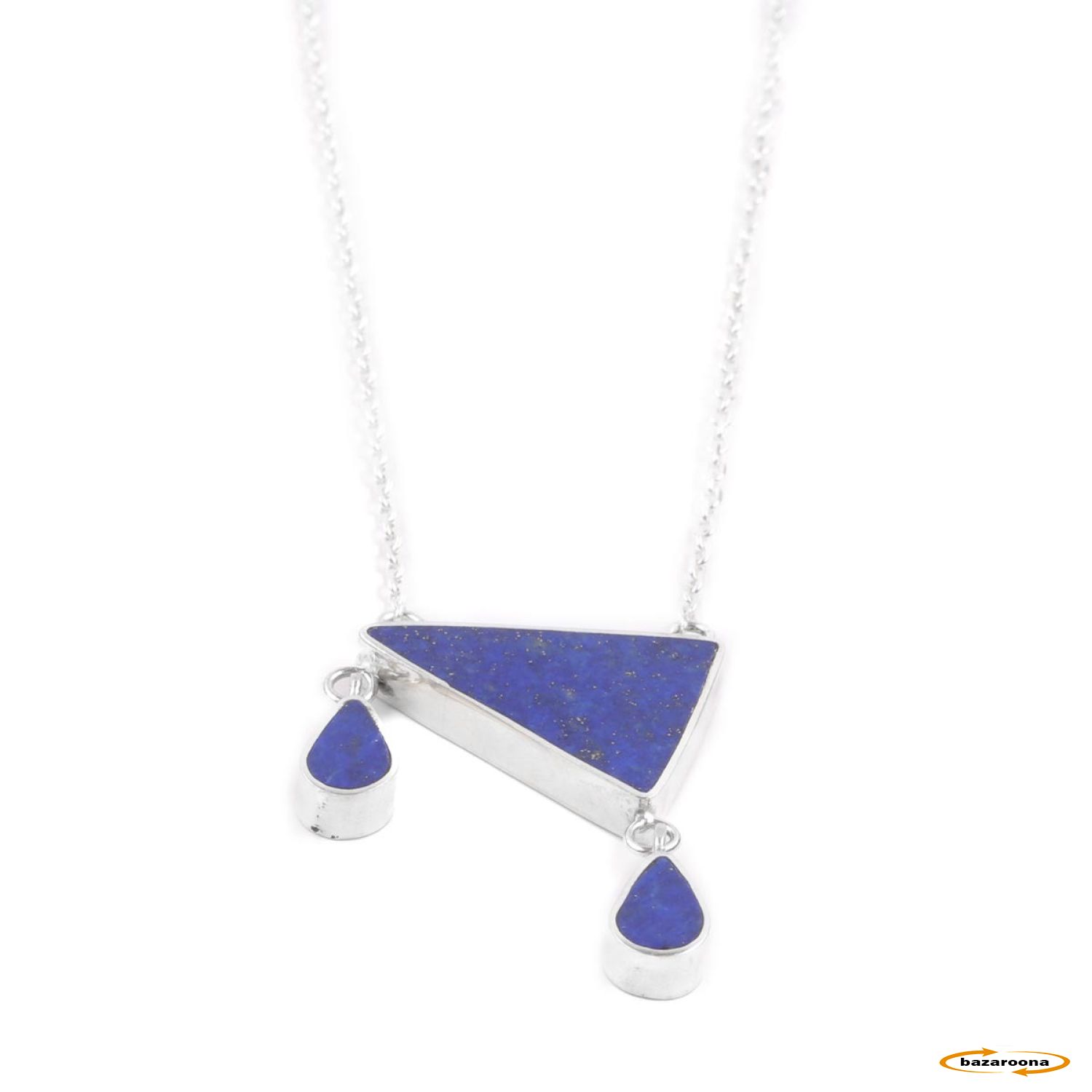 Silver triangular lapis lazuli pendant with natural stone