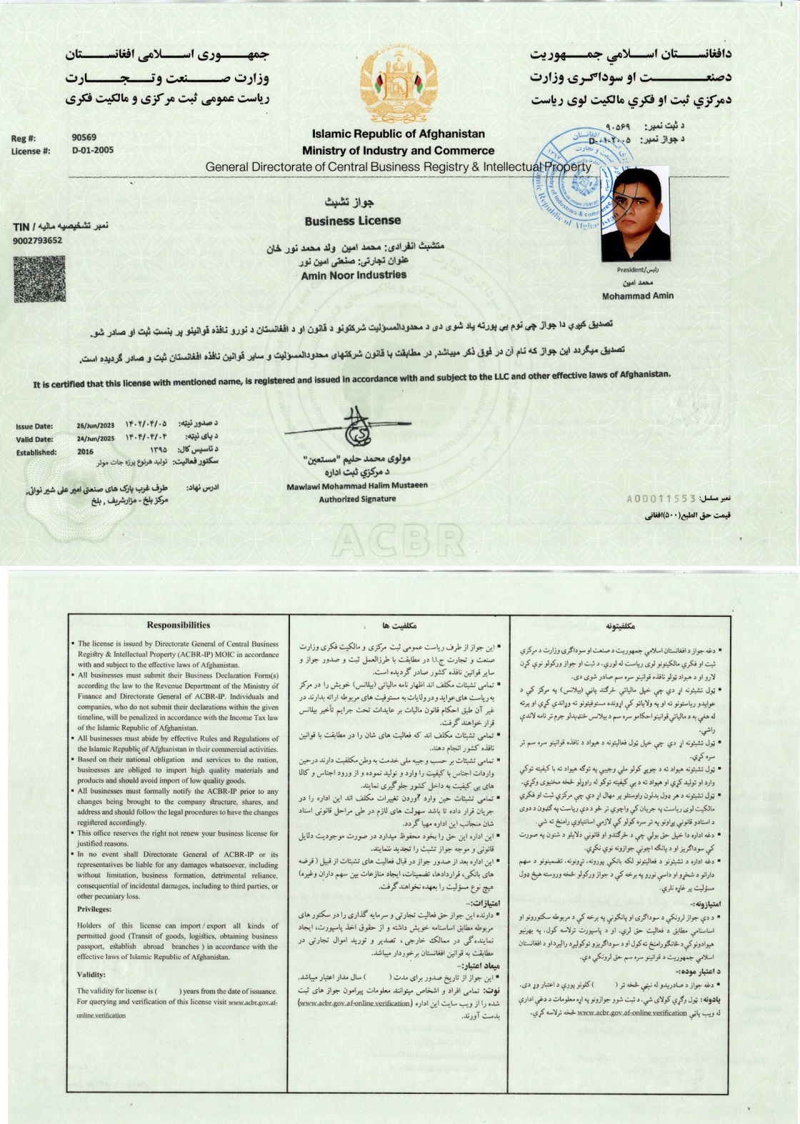 Amin Noor Indutrial Company is located Mazar-e Sharif, District 12, Near Amir Ali Shir-e Nawaie industrial parks.