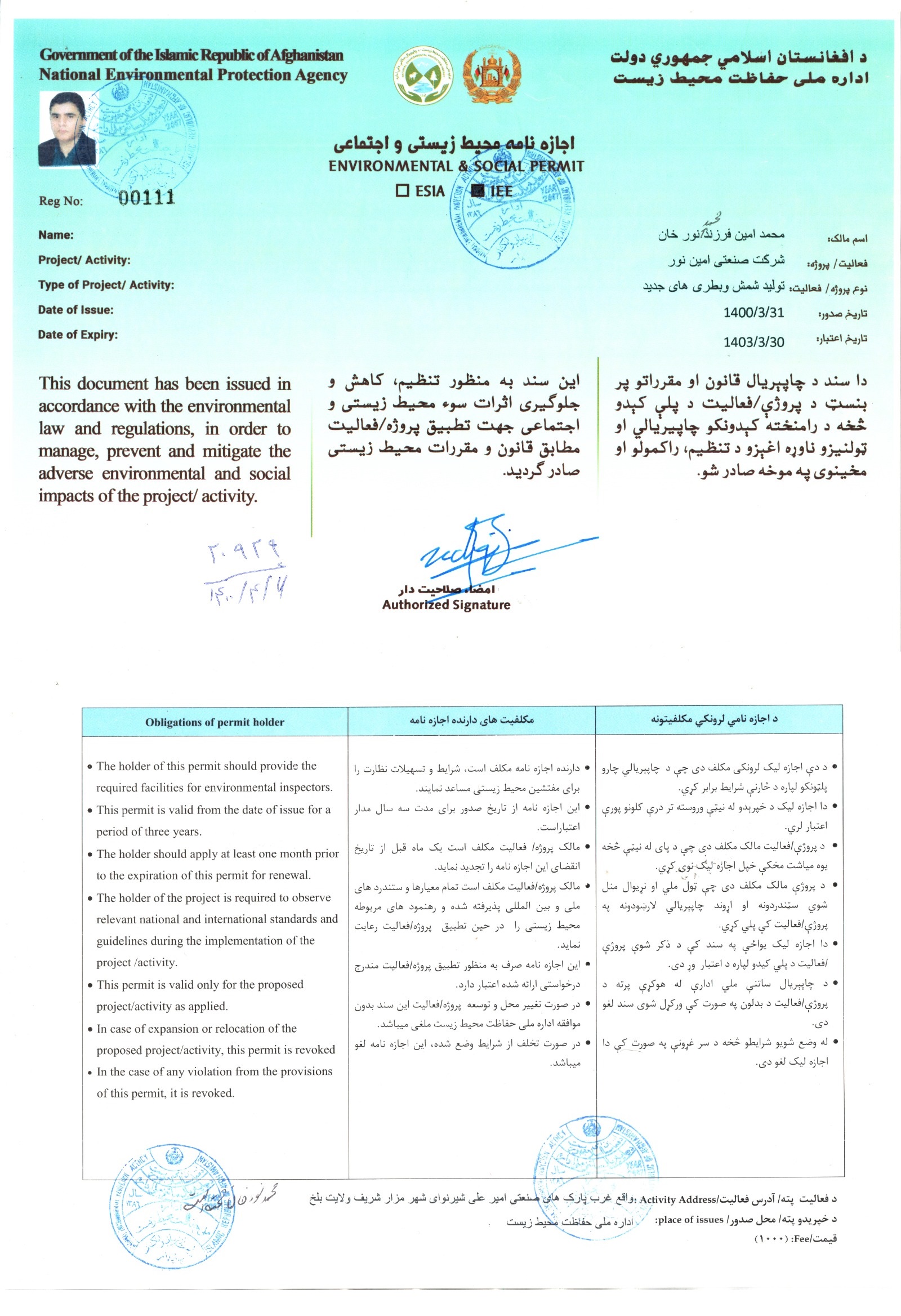 Amin Noor Industrial Company produces Batteries made in Afghanistan with international standards, more than 10 years of work experience in the center and provinces.