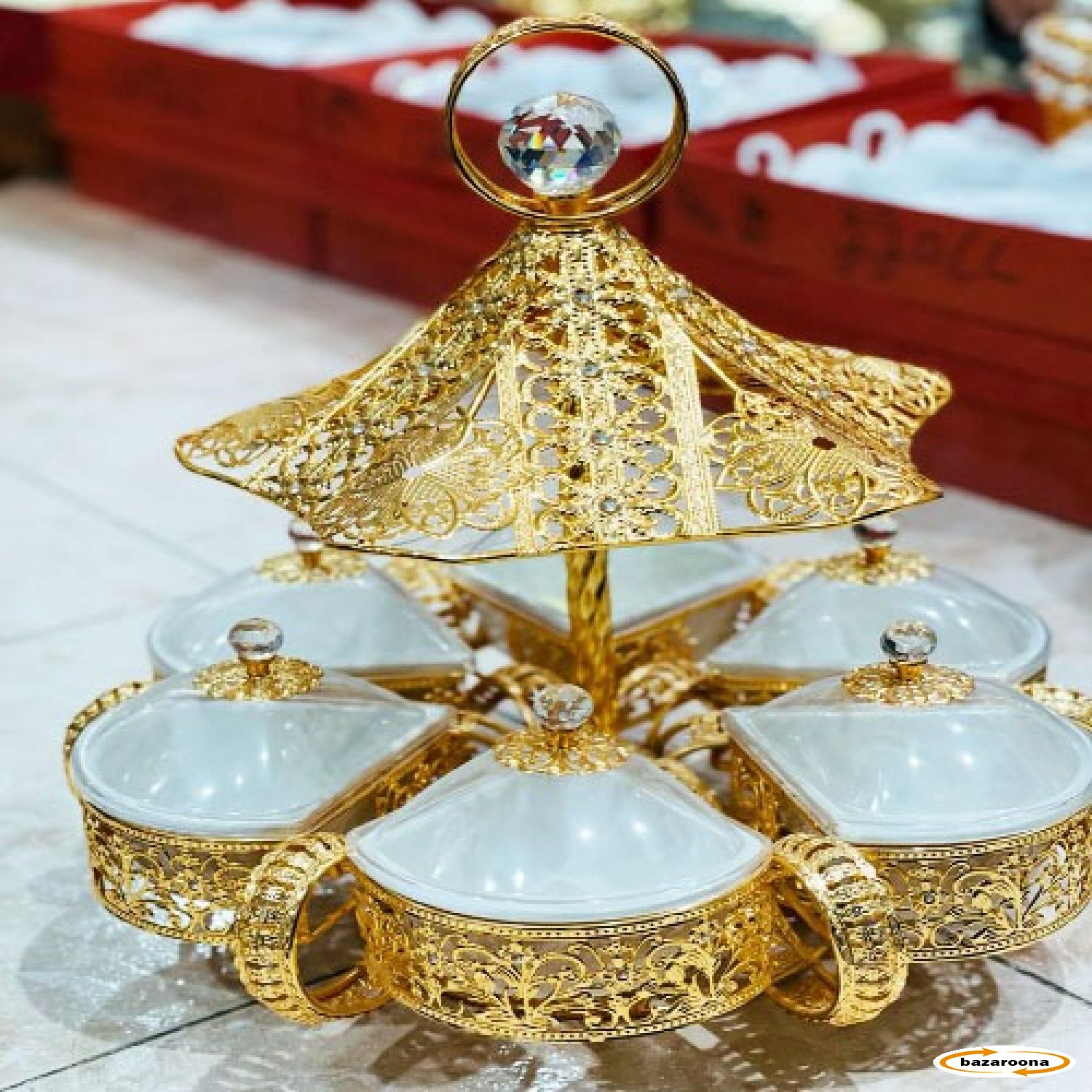 Beautiful home decor dried fruit plate. This is made of nickel and plastic covers that have beautiful and stylish designs to decorate your home with.
