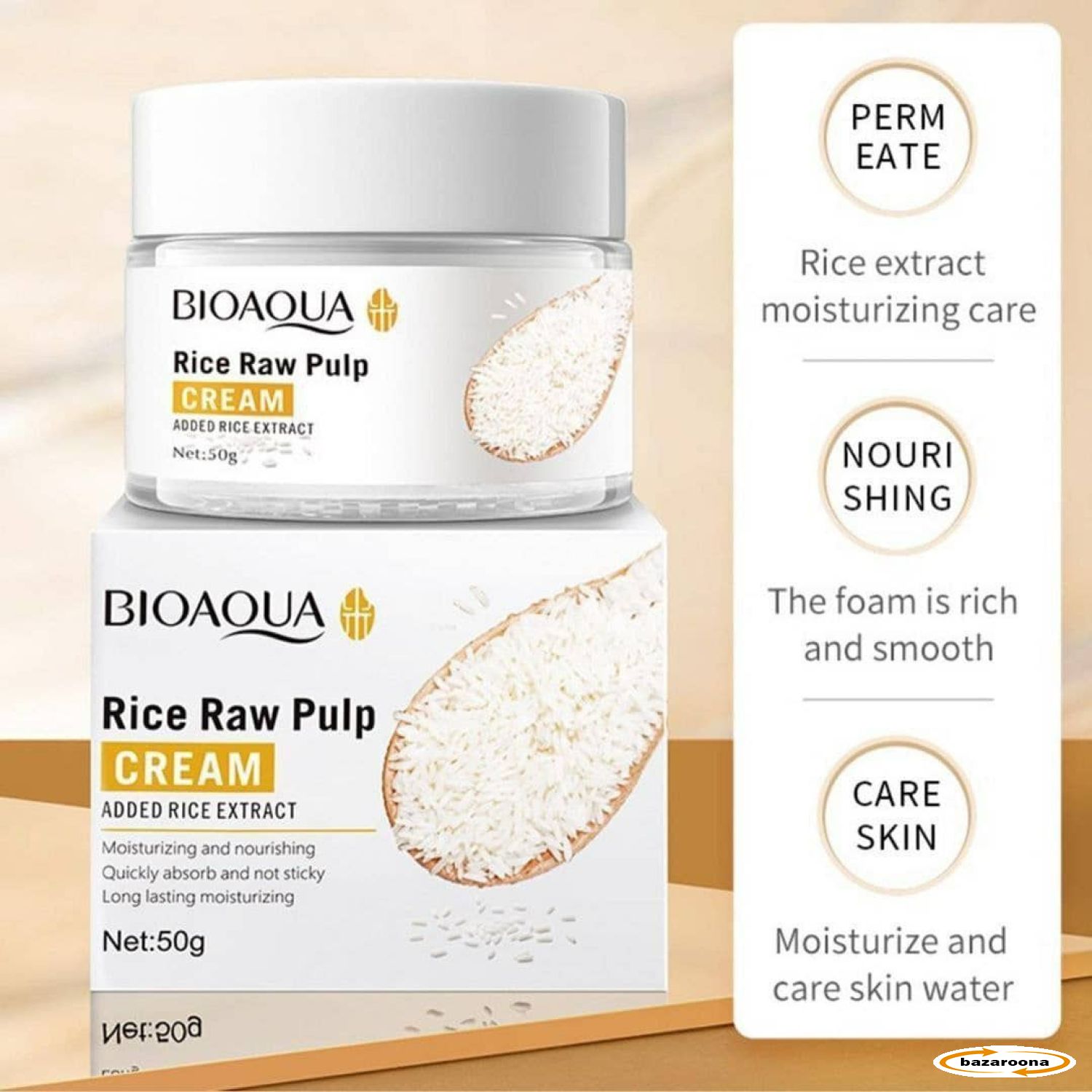 BIOAQUA Rice Raw Pulp Face Brightening Cream is a high-quality face cream to brighten your skin. These products are made of rice raw pulp.