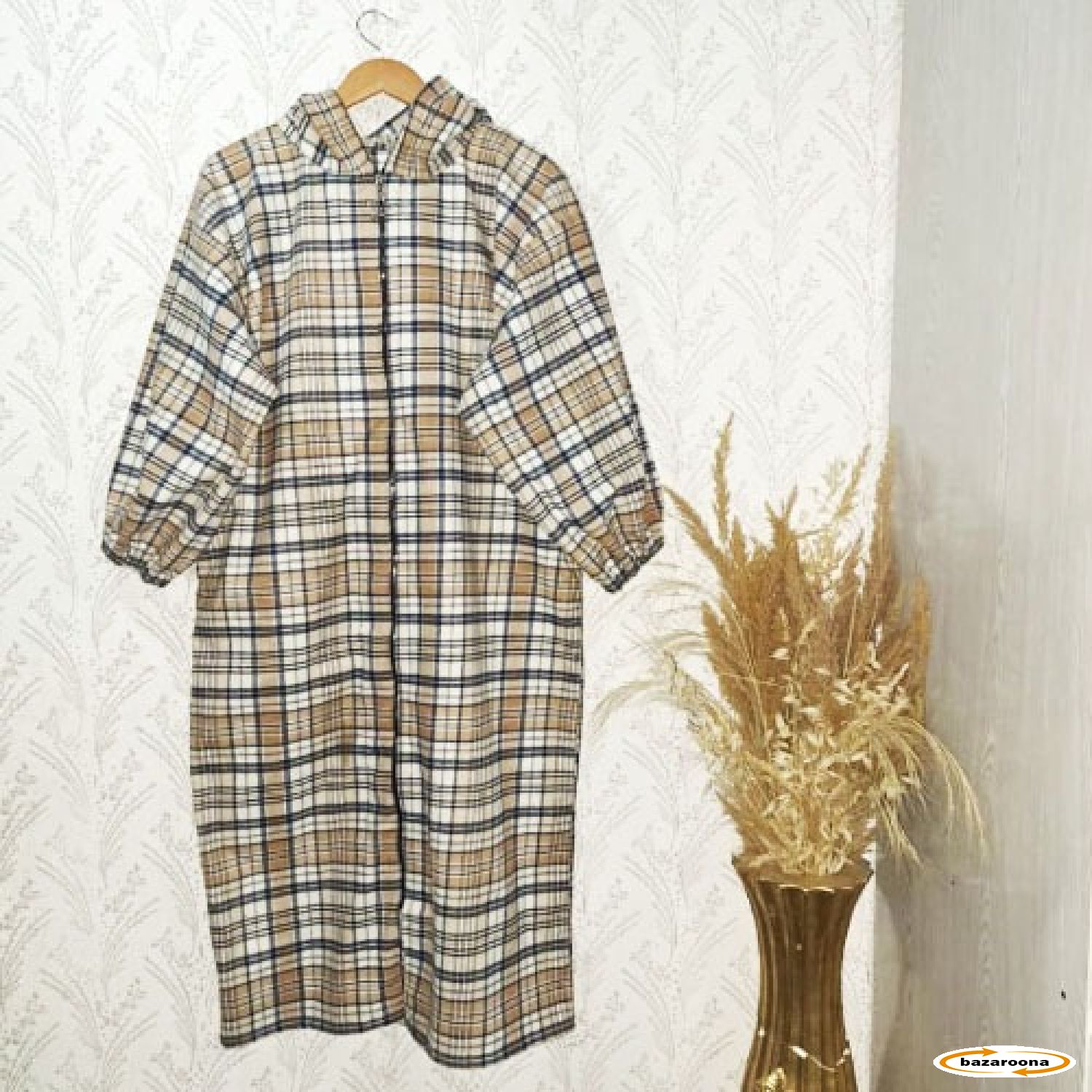 پیراهن رنگارنگ چهارخانه گرم زنانه