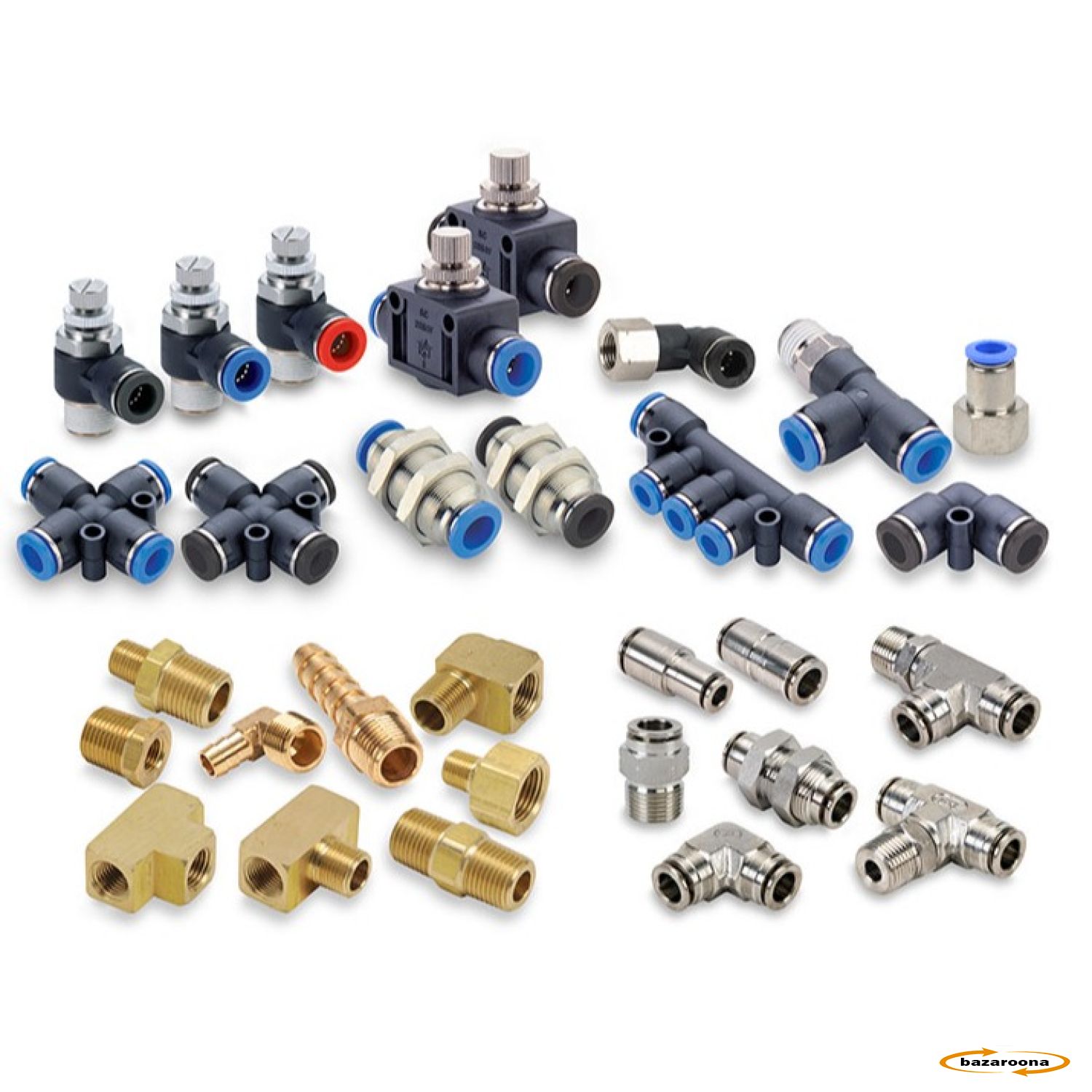 اتصالات پنوماتیکی یا کنکتورپایپ های ماشین الات تولیدی : قطعاتی هستند که برای اتصال بخشهای لوله، لوله و شیلنگ در سیستمهای پنوماتیک (گاز تحت فشار) استفاده میشوند. در مقایسه با اتصالات هیدرولیک، اتصالات پنوماتیکی معمولاً با مهر و موم های محکم تر و نیاز به فشار کمتر مشخص می شوند. آنها اغلب در سیستم های کنترل منطقی پنوماتیک و ابزار دقیق استفاده می شوند.