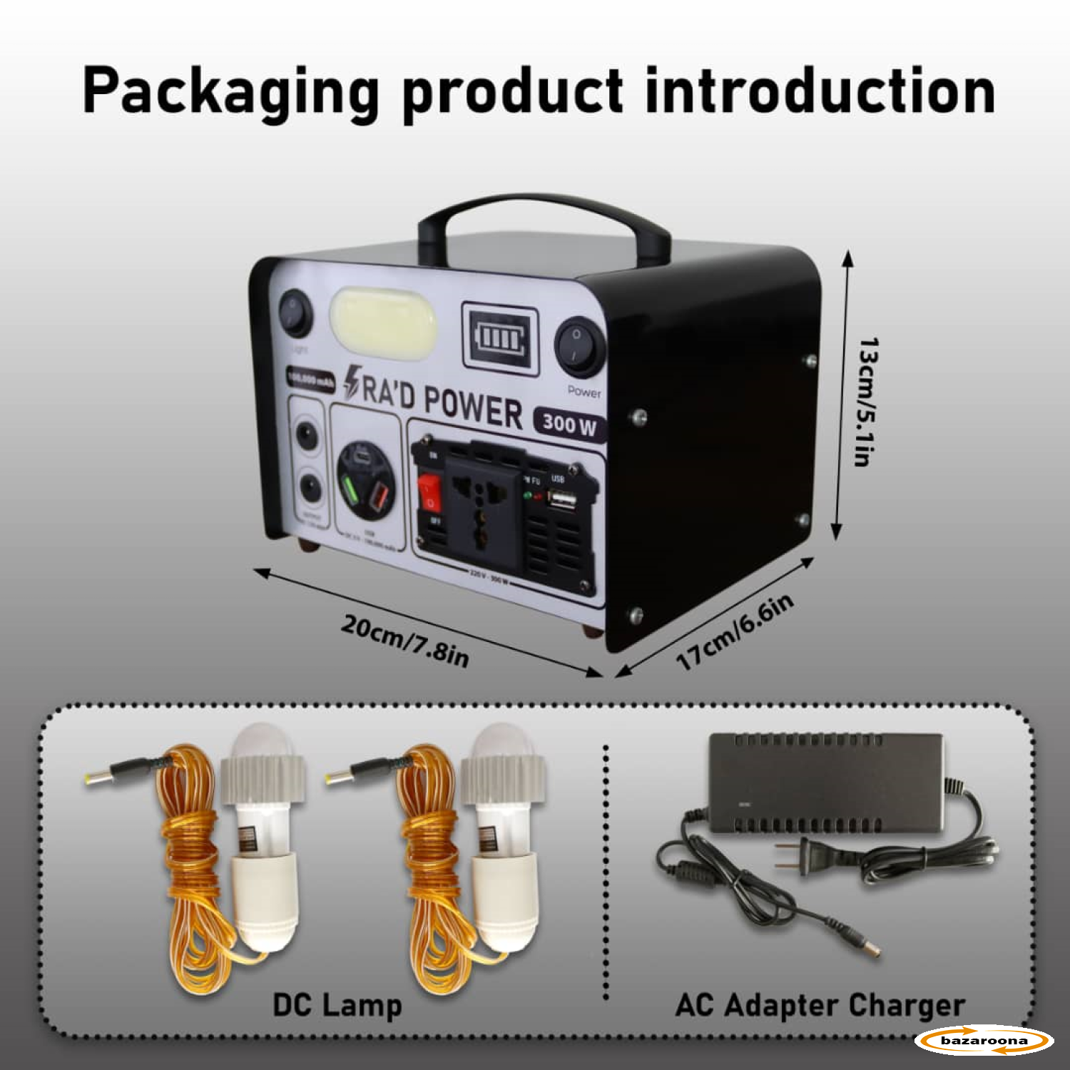 قدرت انورتر 300W برای روشن نمودن تلویزیون، پکه، کولر، لپ تاپ، پرنتر، وای فای و کمره
