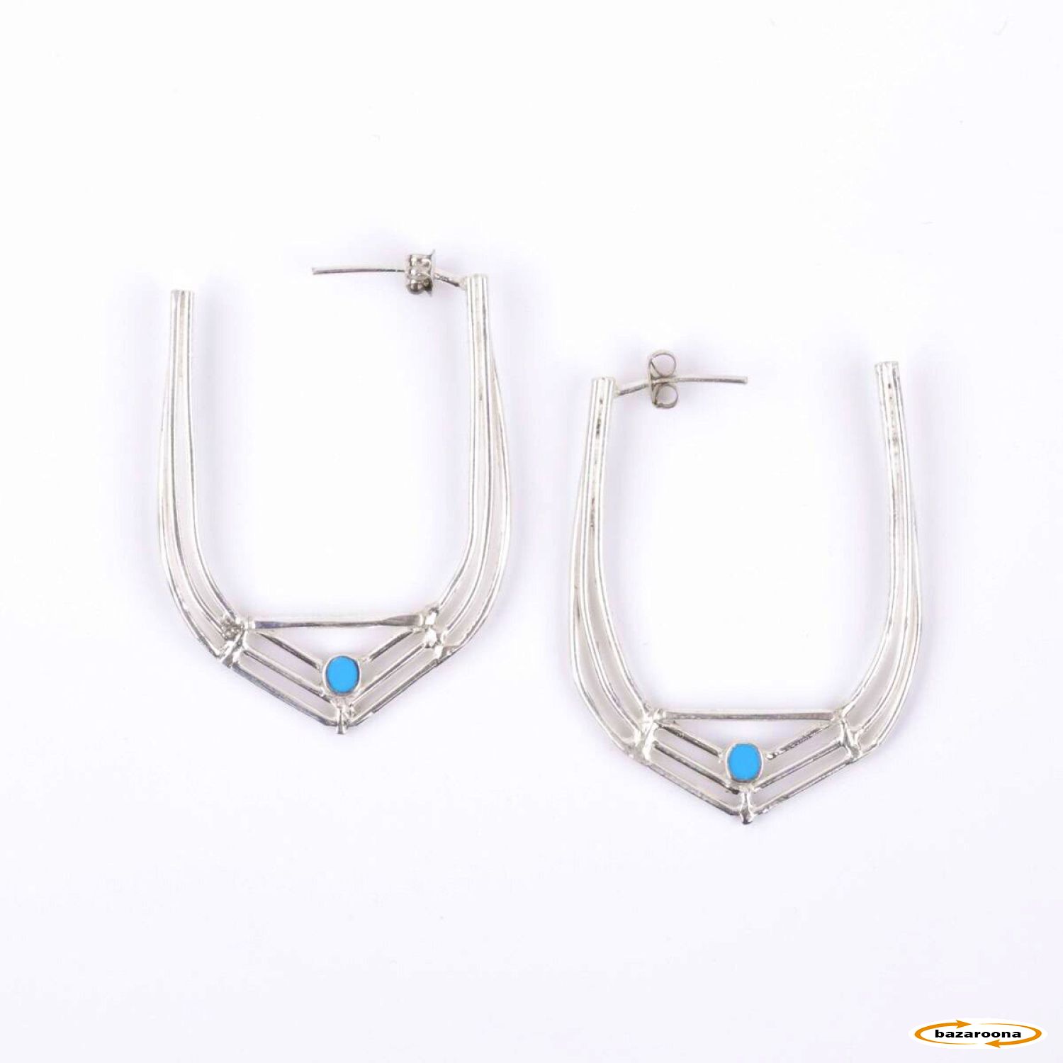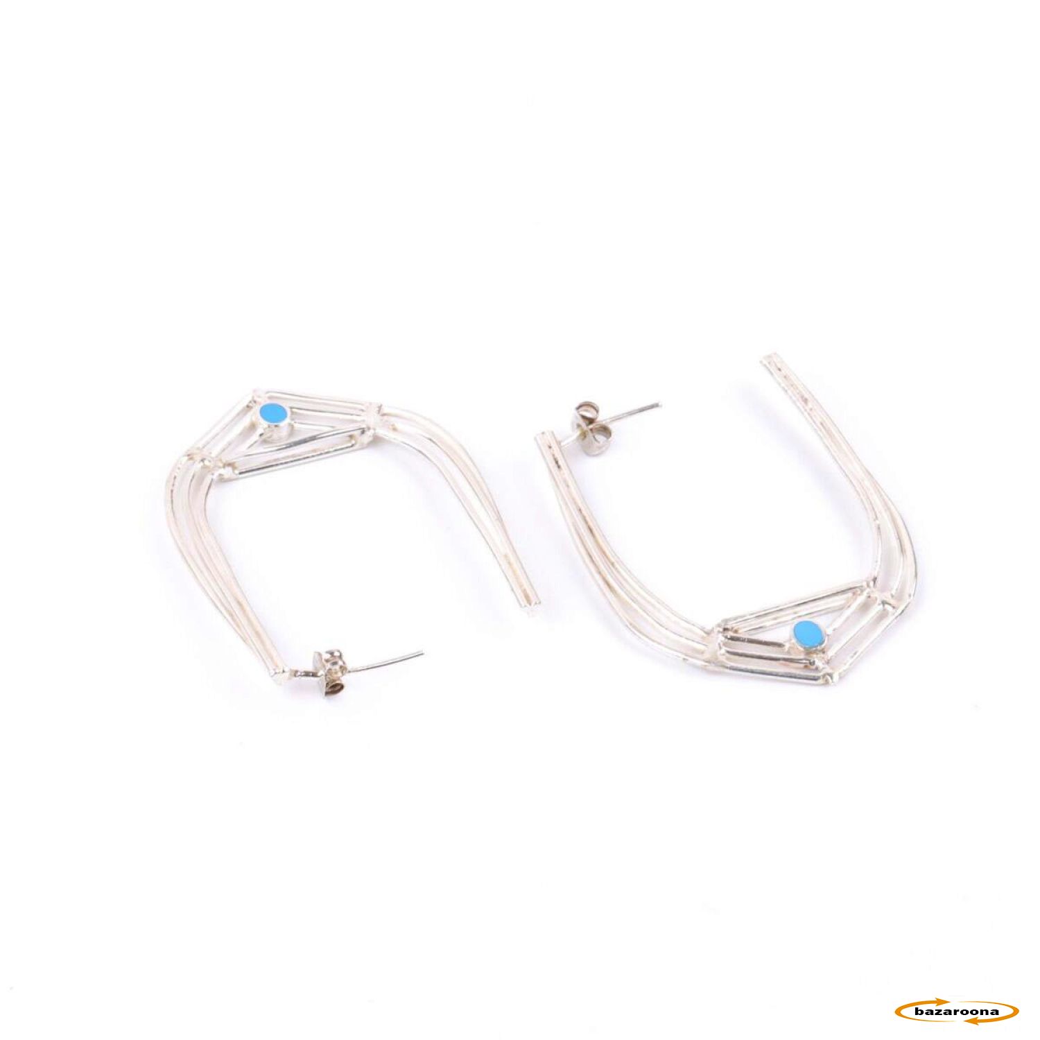گوشواره نقره ای (فیروزه ای) با رنگ و طرح زیبا. این گوشواره ها بهترین طرح و فلز نقره هستند. طراحی این محصولات با جدیدترین و شیک ترین طرح ها ساخته شده است.