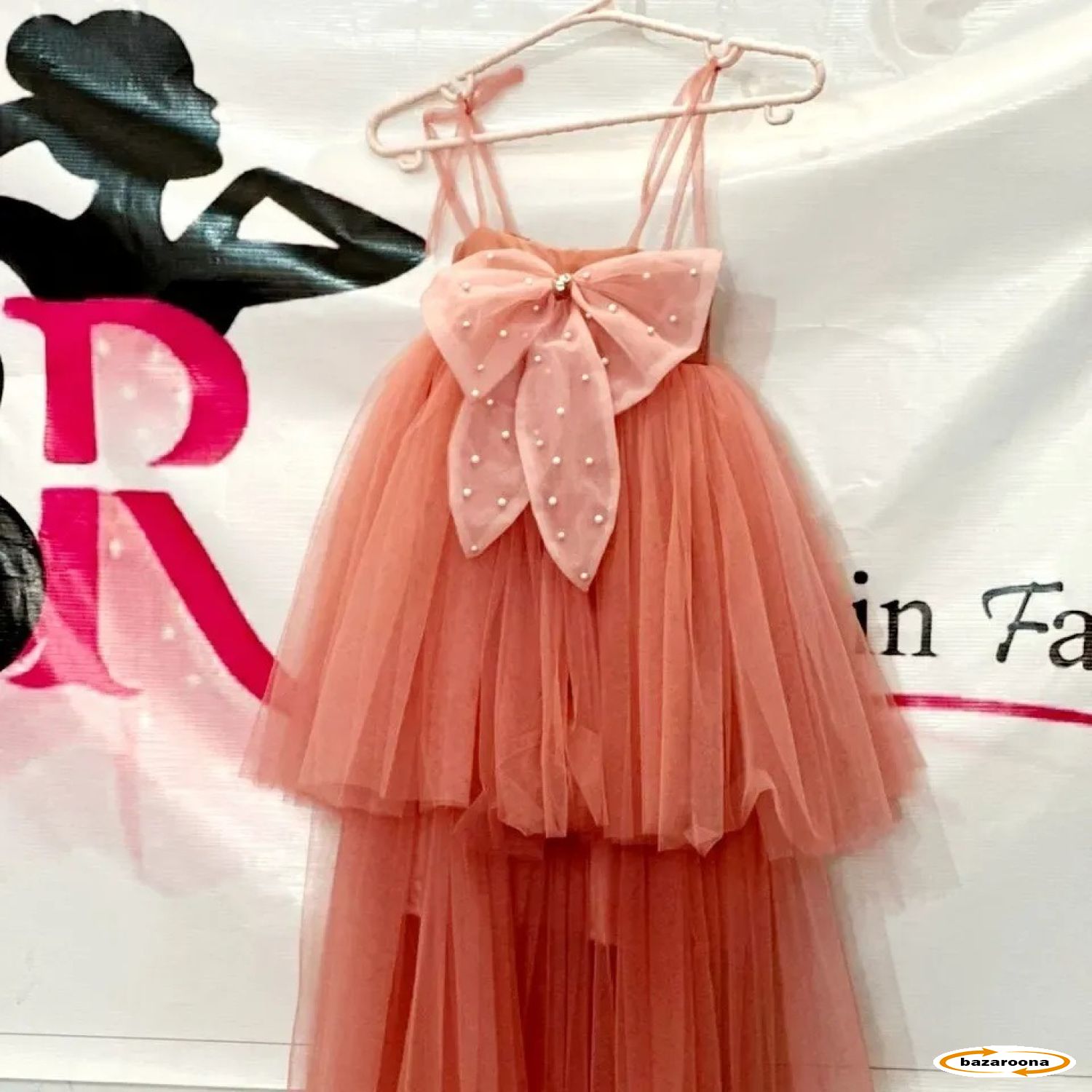 Girl's Floral Tail Dress with different colors like; Milk Tea & Turqious and designed with stylish & modern tail designs.