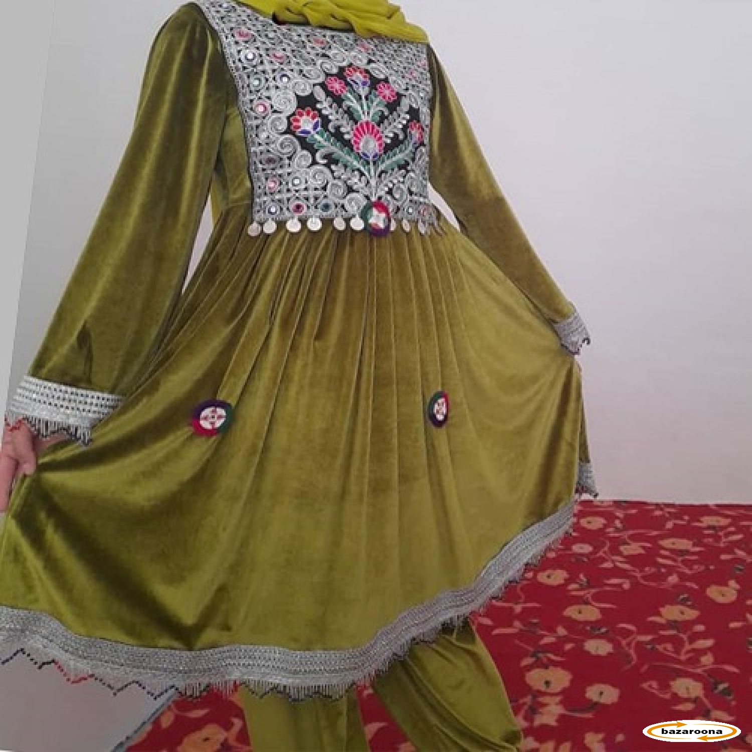 Green color simple women's dress with a beautiful design. These clothes are made of high-quality fabric that has gorgeous designs.