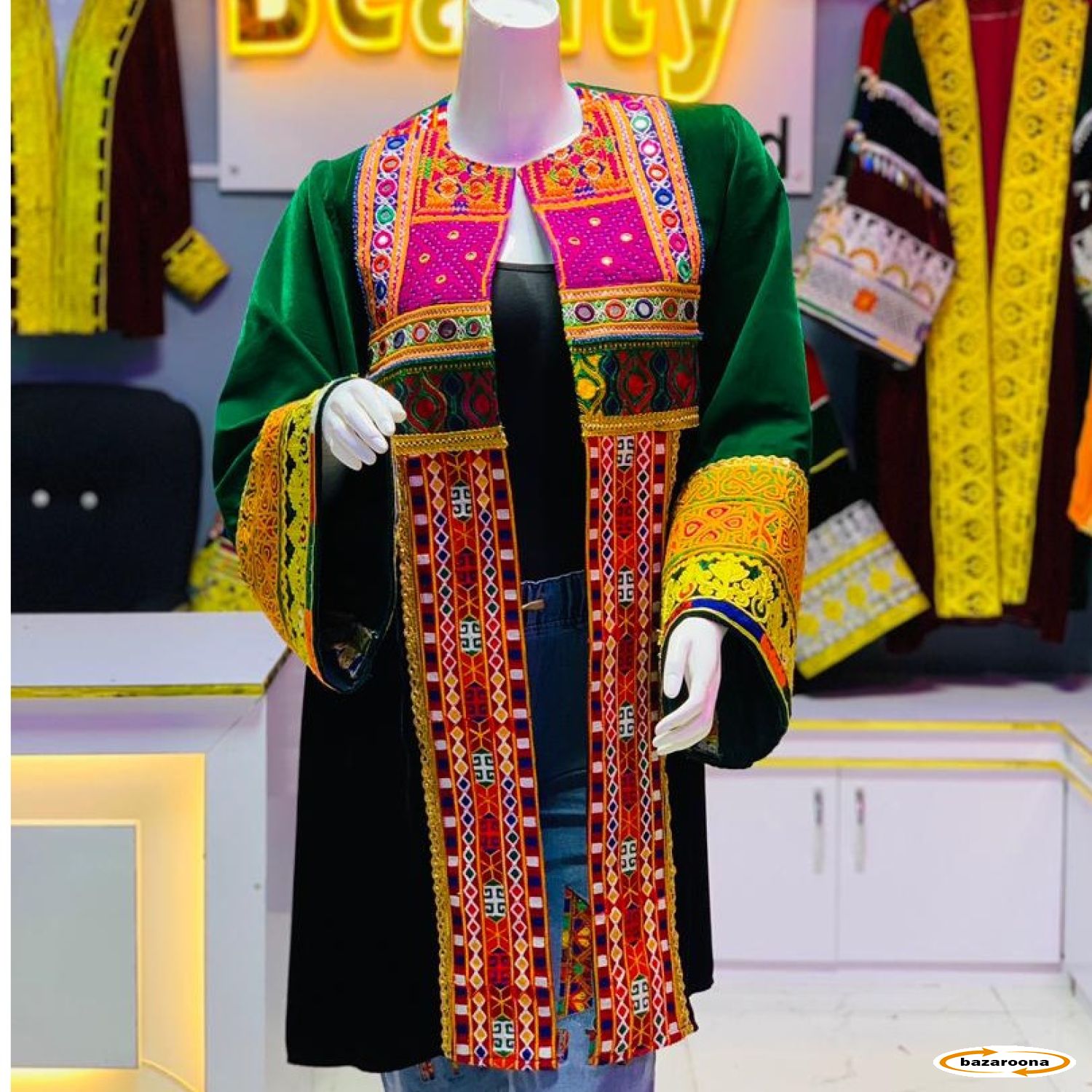 Modern and stylish Velvet Afghani Traditional Coat for women. These Coat are made of high-quality fabrics and designed with beautiful flowers.