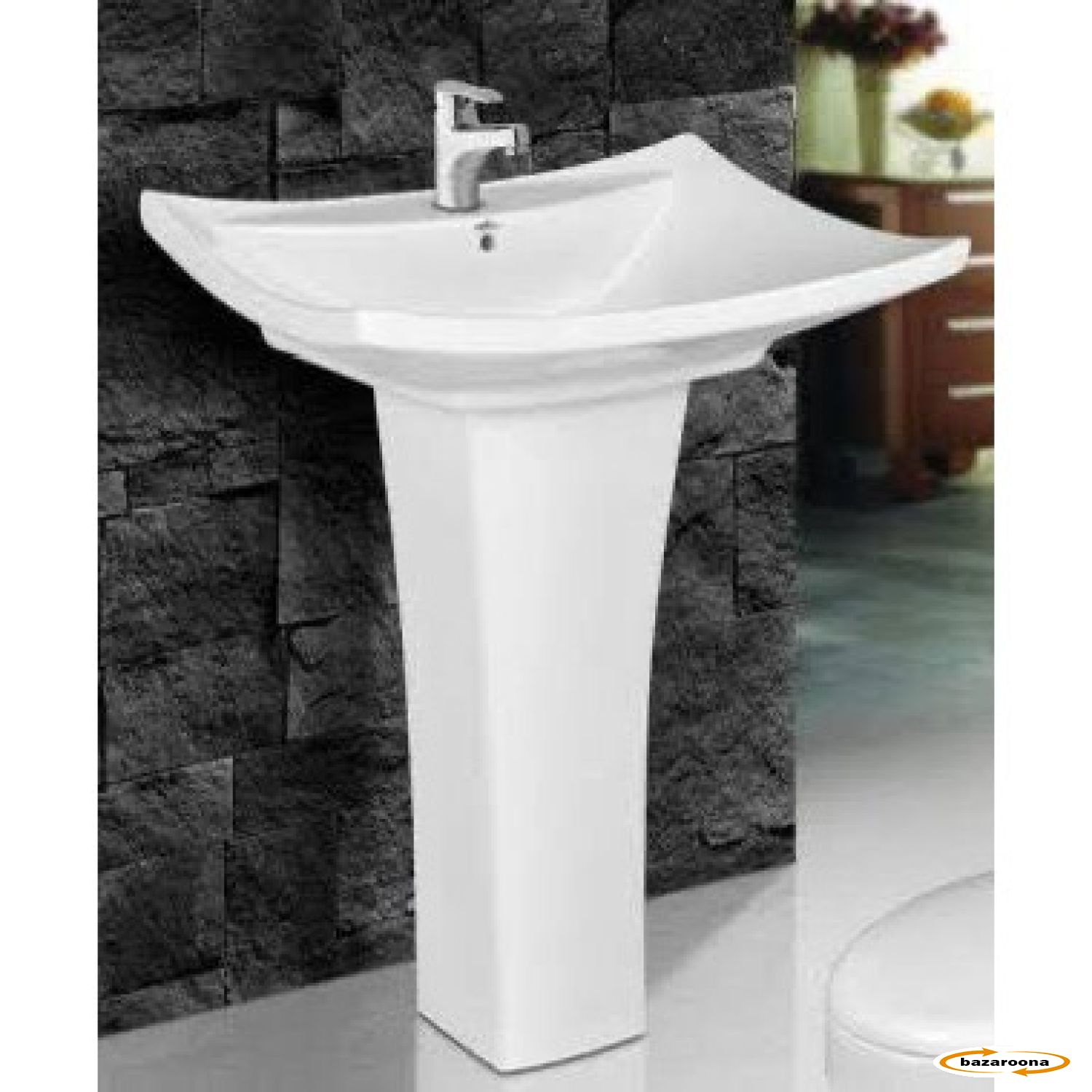This pedestal sink features a sleek and modern design, perfect for adding a touch of elegance to any bathroom. Made from high-quality ceramic, its smooth white surface is easy to clean and maintain. The pedestal base offers sturdy support and conceals plumbing, providing a neat and streamlined look. Its wide basin allows for comfortable use, making it an ideal choice for both small and large bathrooms. The sink is equipped with a single faucet hole for easy installation of a modern faucet.