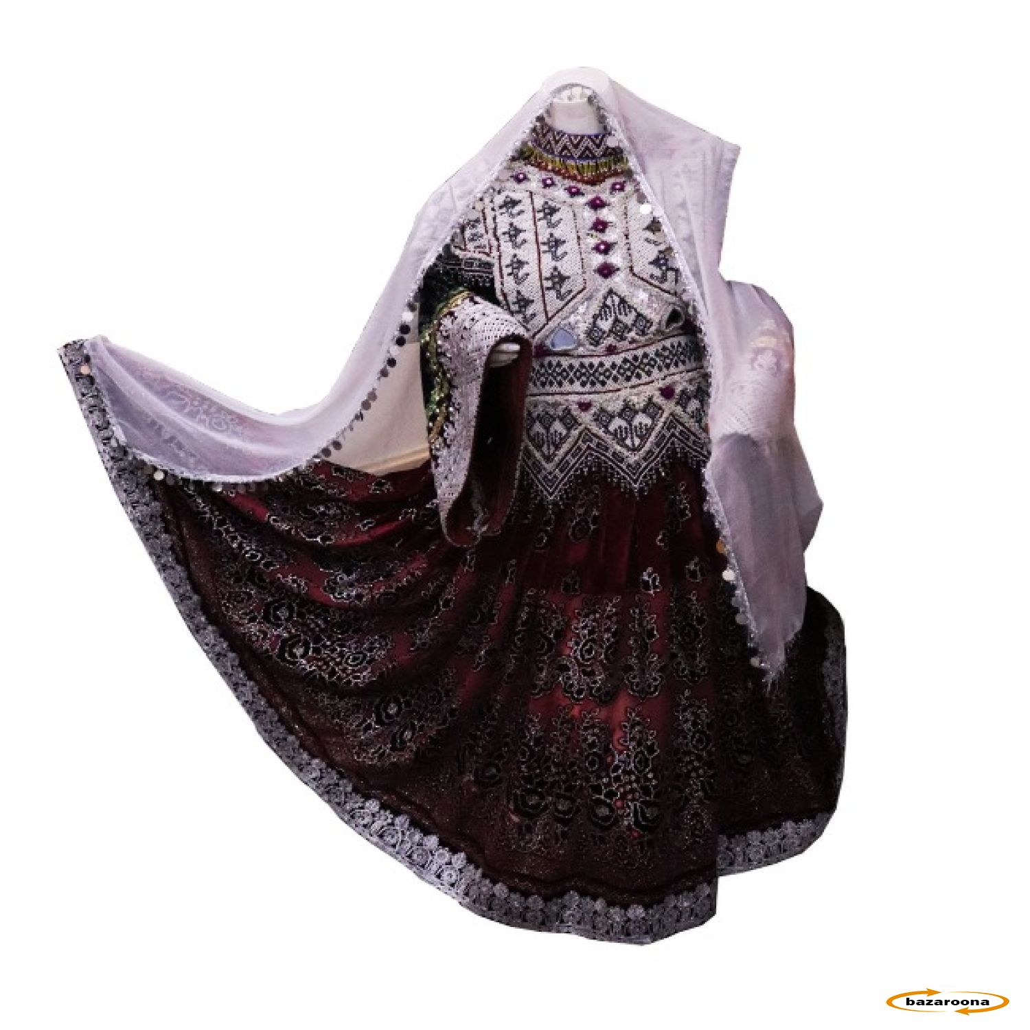 | مواد: | ساټین، څو رنګ، سکې، عکس، ګنډل، کلتور، ټوکر |