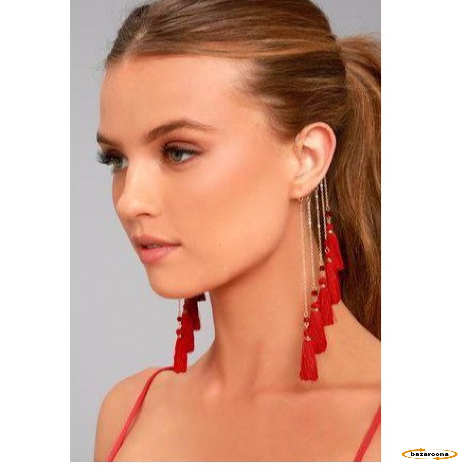 د سرو زرو ټون ۳ حلقې غوږوالۍ د سرو زرو ټون فرینجونو یو په زړه پورې جریان وړاندیز کوي چې له درې وصل شوي حلقو څخه په ښایسته توګه ځوړند دی. د هرې جامې لپاره د زرق او برق اضافه کولو لپاره مناسب، دا غوږوالۍ د ځانګړو موقعو او ورځني استعمال لپاره مثالي دي. سپک او سجیلا، دوی ستاسو لید ته د ظرافت او حرکت احساس راوړي.