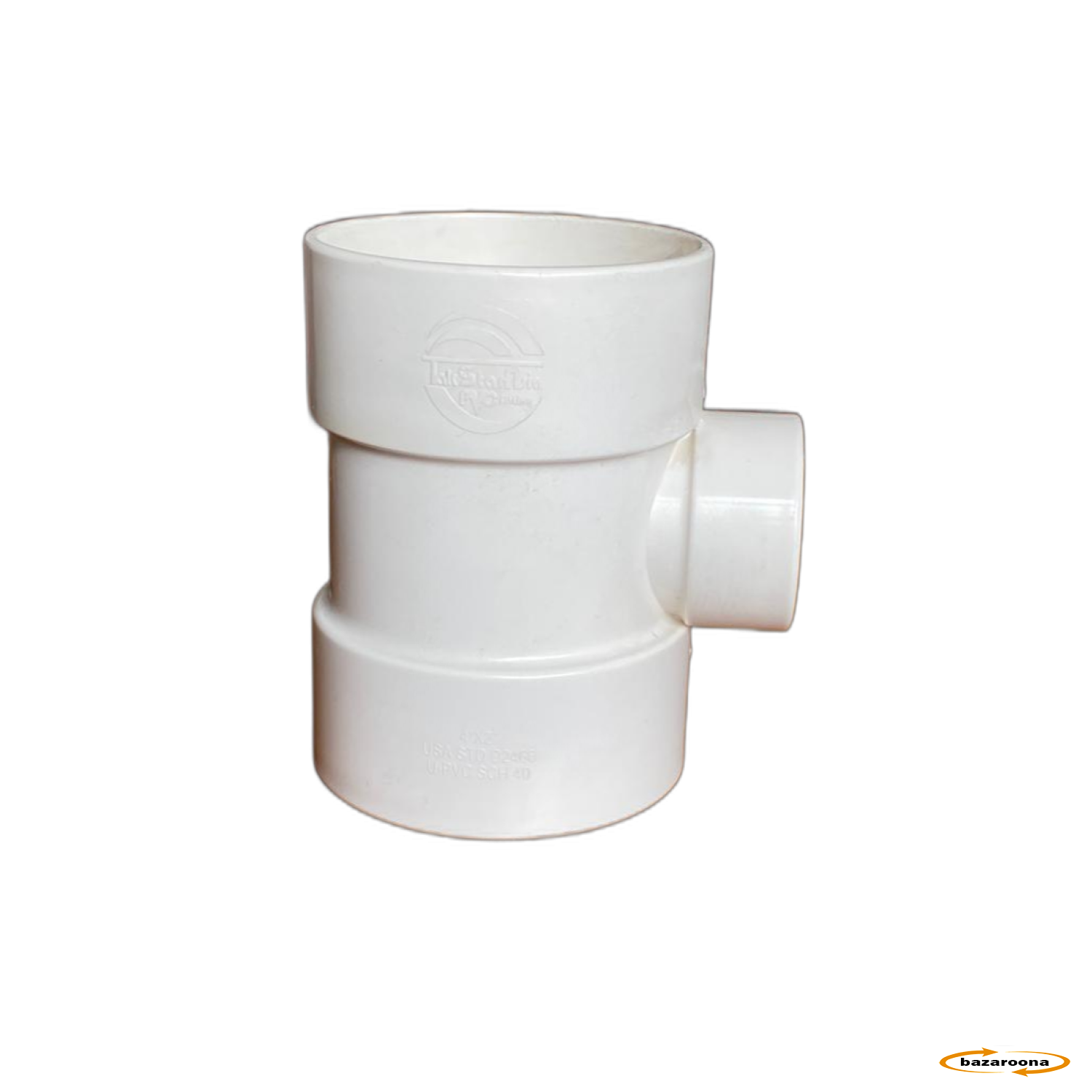 په عمودی PVC سپینه DWV پایپ سیسټم کې نصب شوی ترڅو د افقی 2'' برانچ لاین څخه 4'' عمودی پایپ فاضله لاین ته د اسانه لیږد اجازه ورکړي.