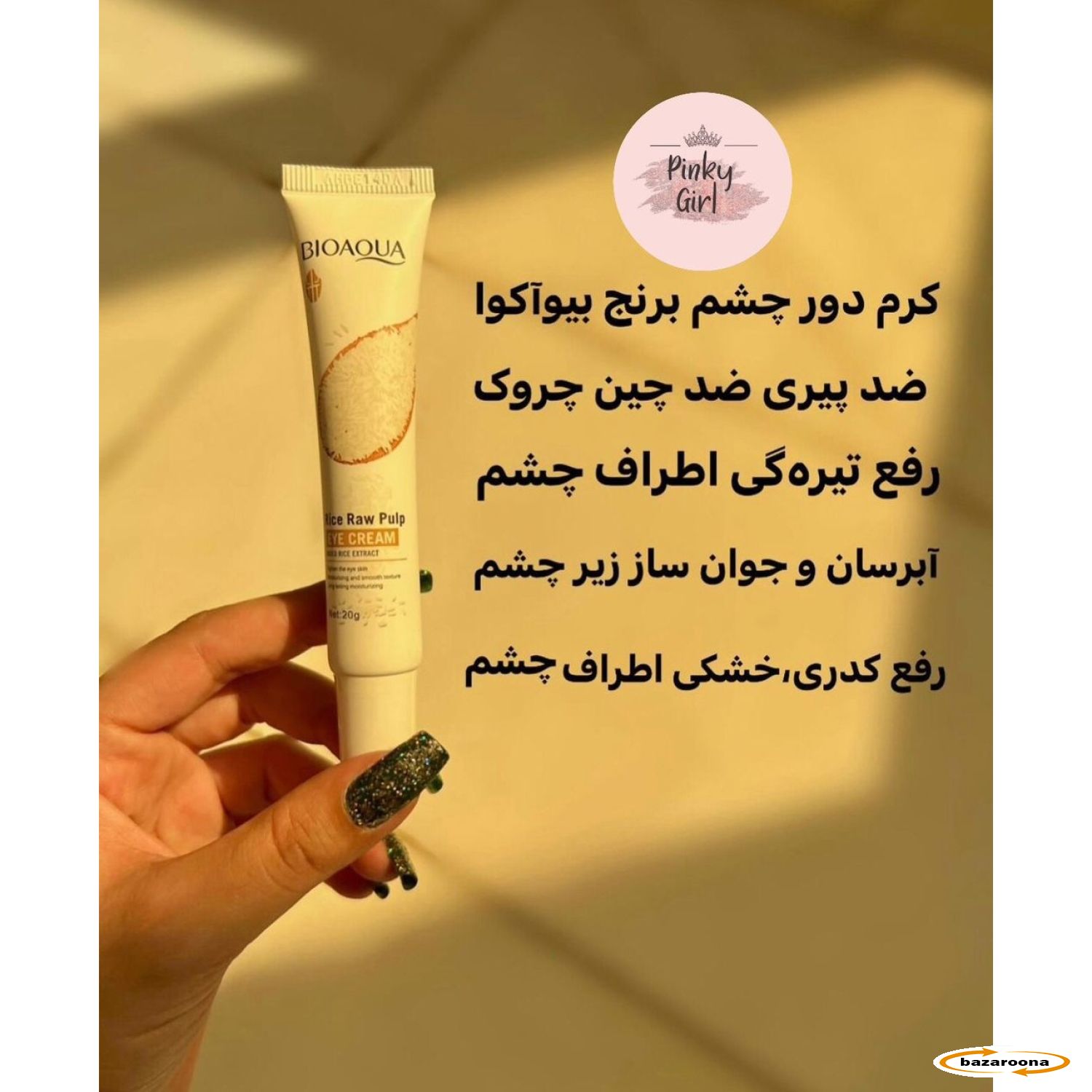 د BIOAOUA د وریجو خام پلپ د سترګو کریم معرفي کول، د ستړي، ستړي سترګو لپاره حتمي حل. دا پرمختللی فورمول ستاسو د سترګو شاوخوا نازک پوټکی ژور تغذیه او هایډریټ کولو لپاره ډیزاین شوی ، چې دوی تازه او تازه ښکاري.