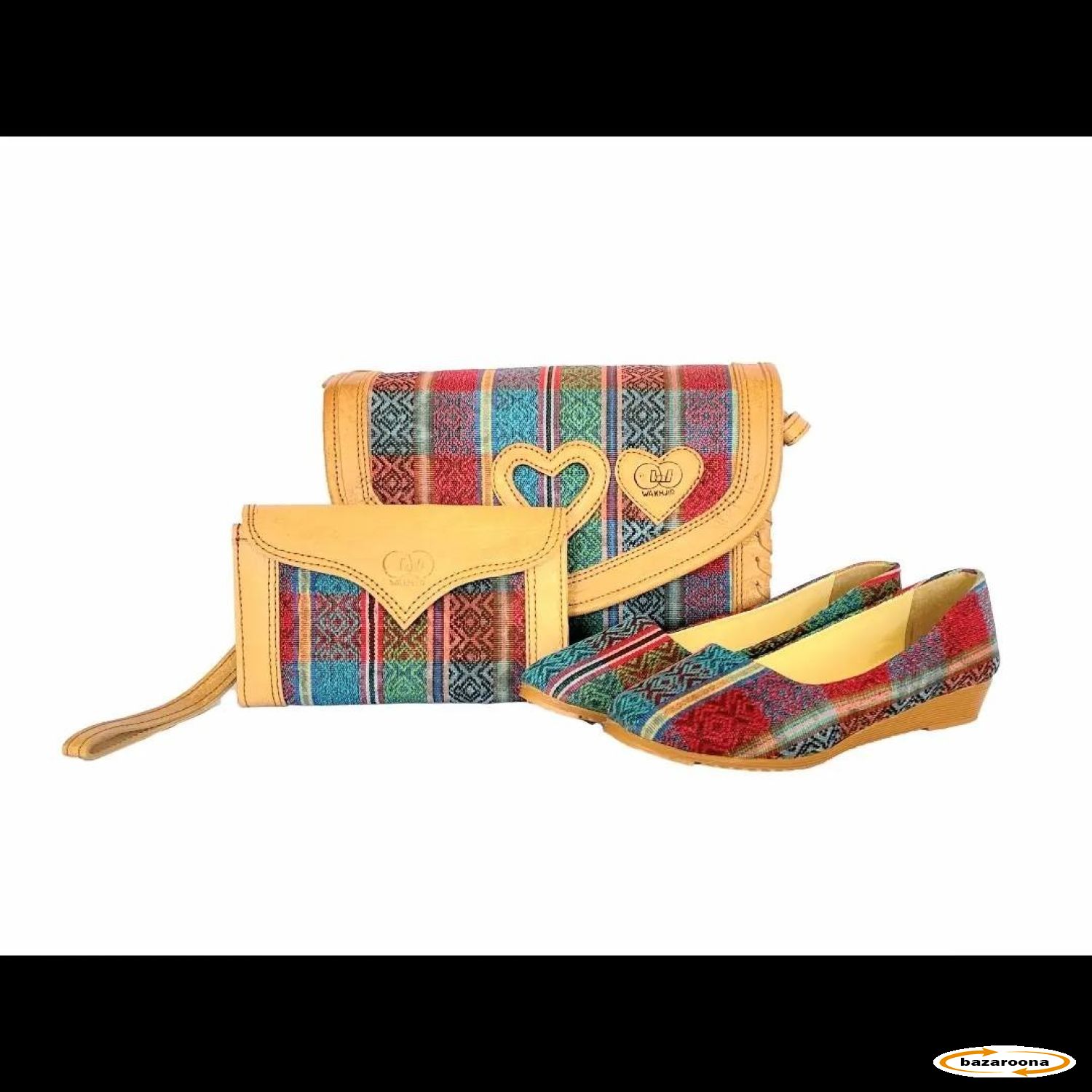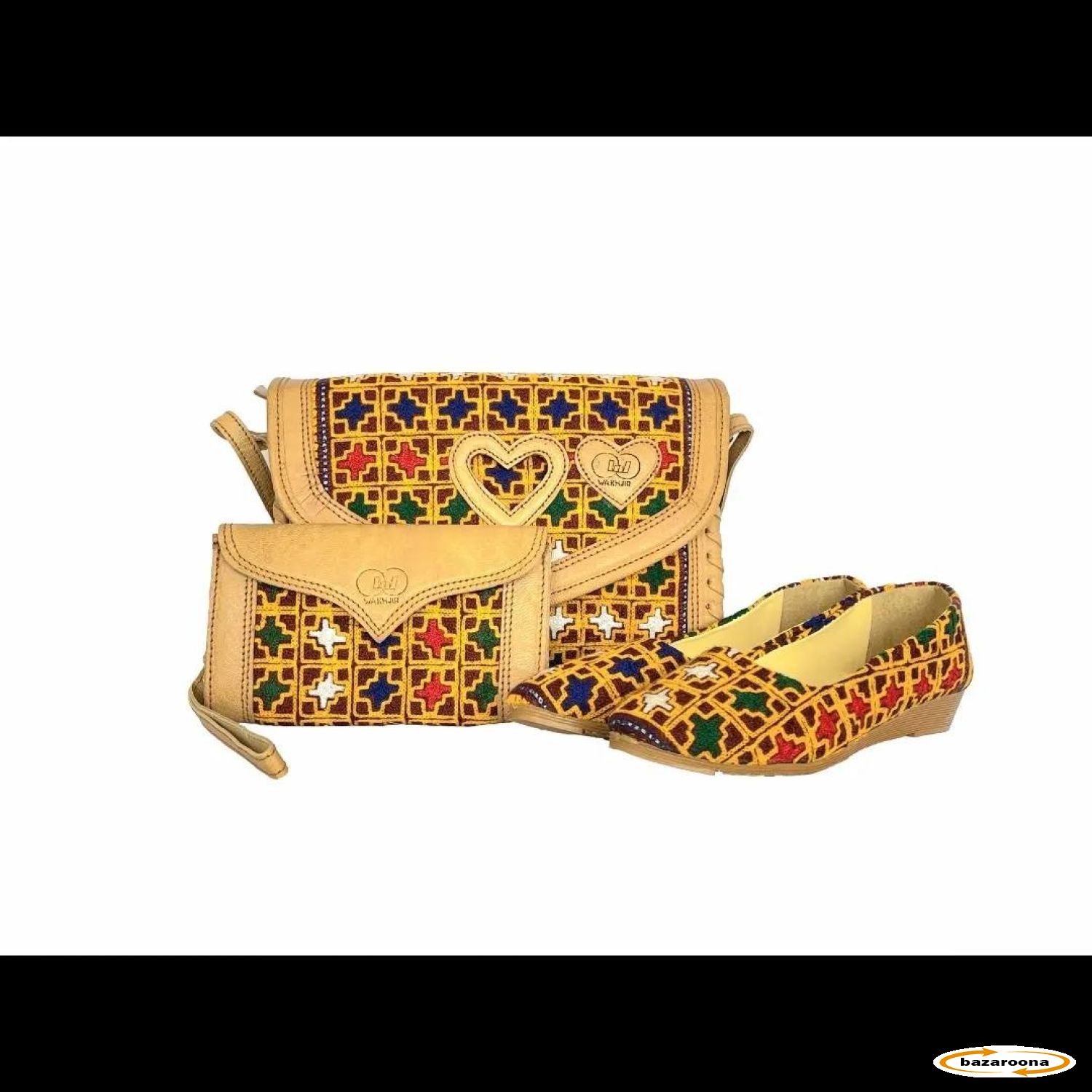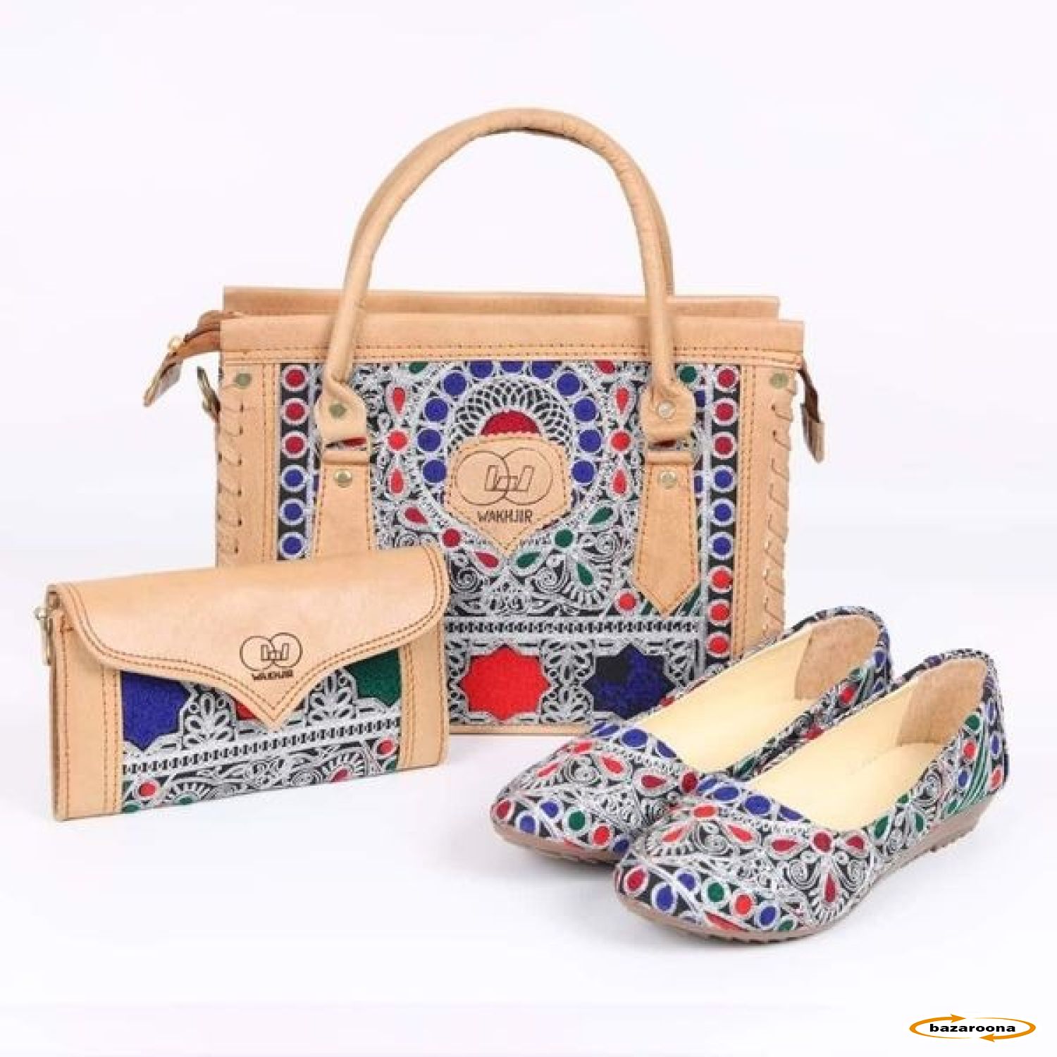 Introducing the elegant Purse, Handbag, and Shoes Set from Wakhjir, a perfect blend of tradition and contemporary fashion. This exquisite set is designed for the modern woman who values quality, style, and functionality.