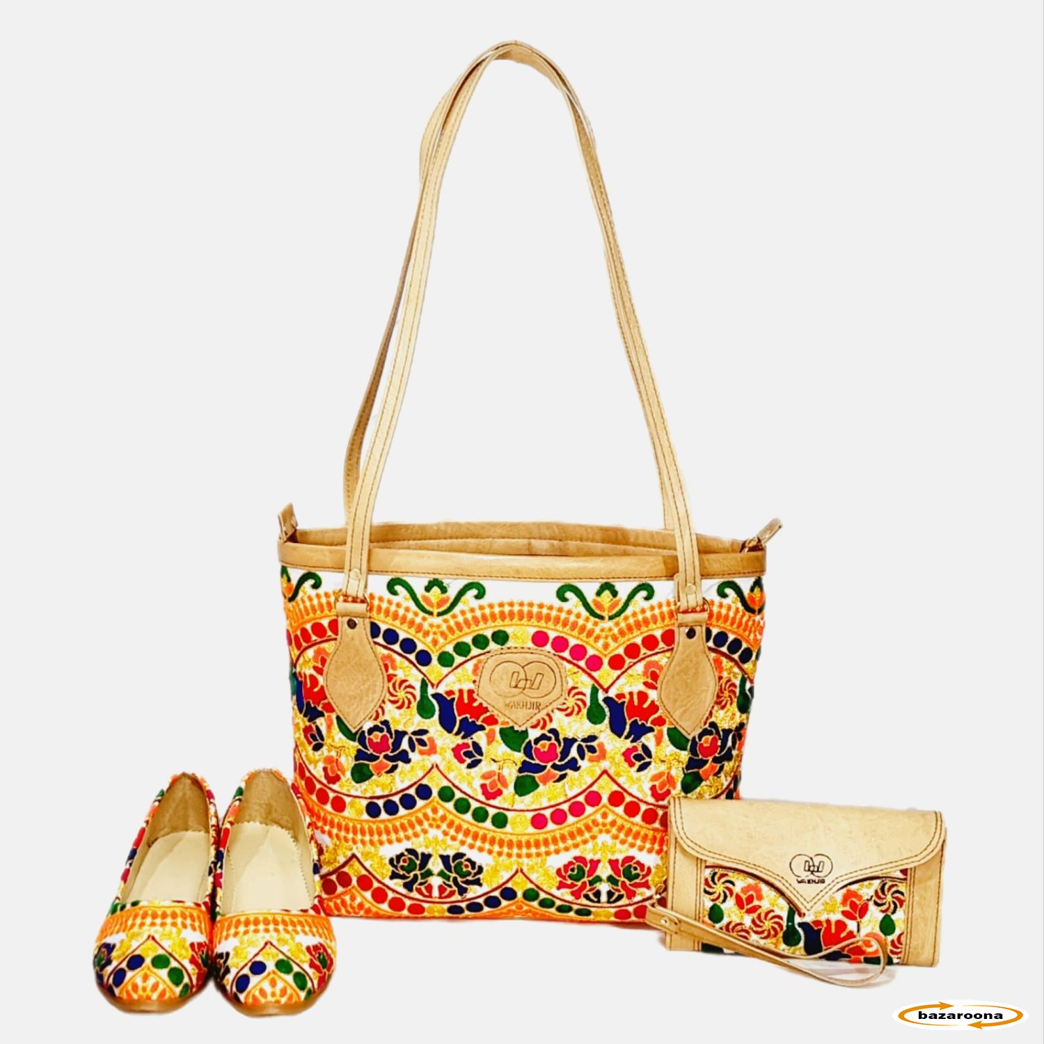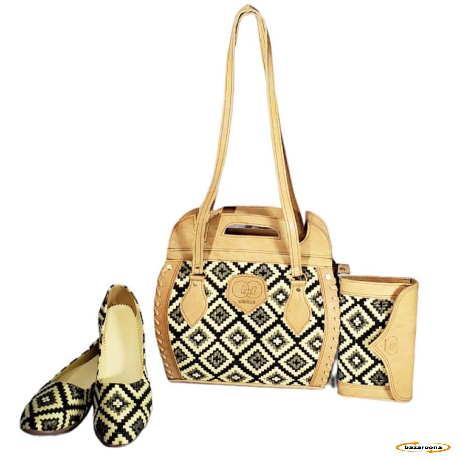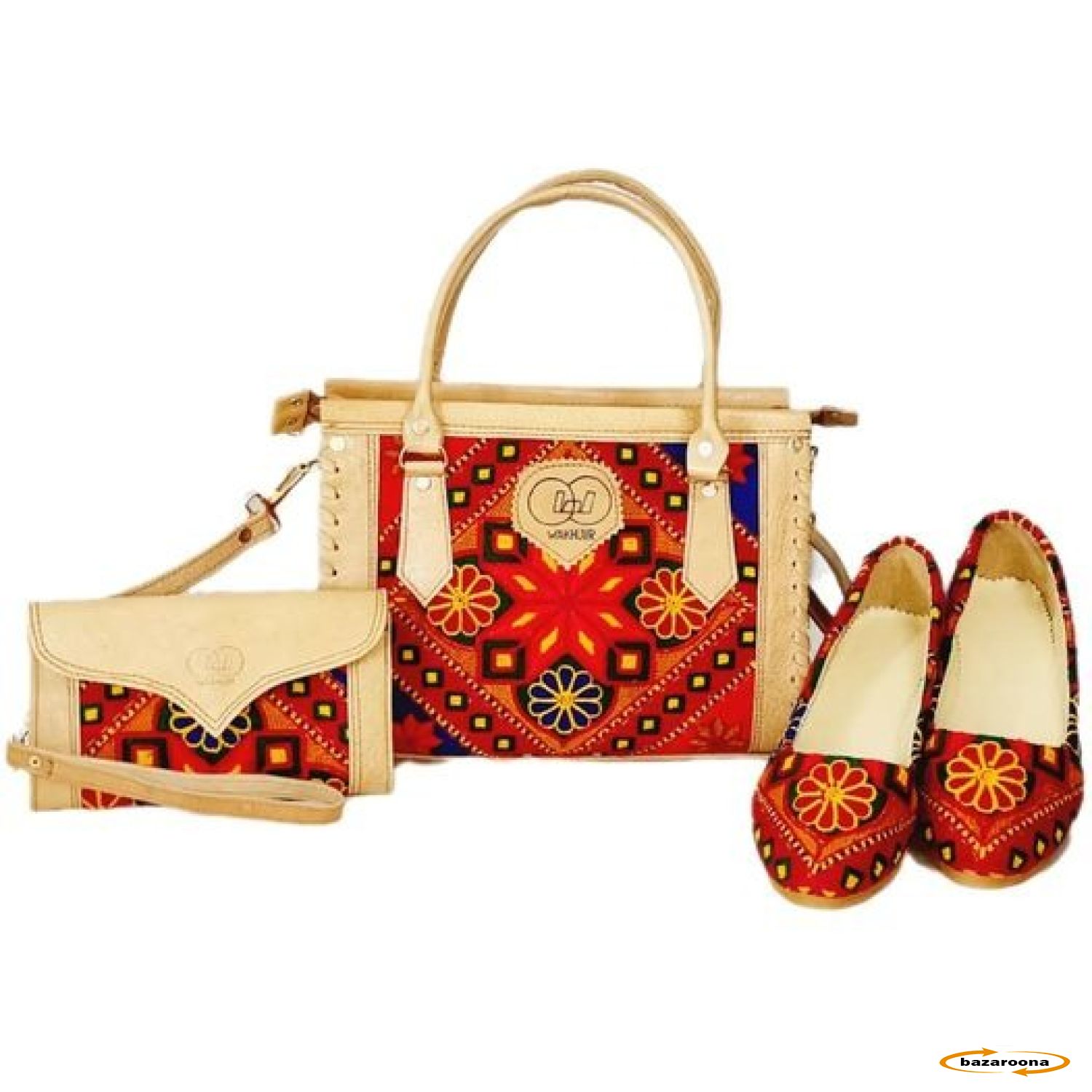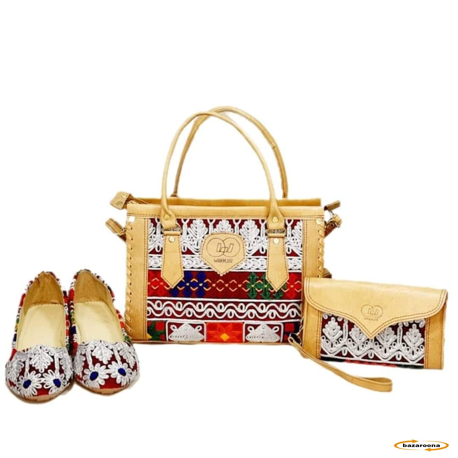 Introducing the elegant Purse, Handbag, and Shoes Set from Wakhjir, a perfect blend of tradition and contemporary fashion. This exquisite set is designed for the modern woman who values quality, style, and functionality.