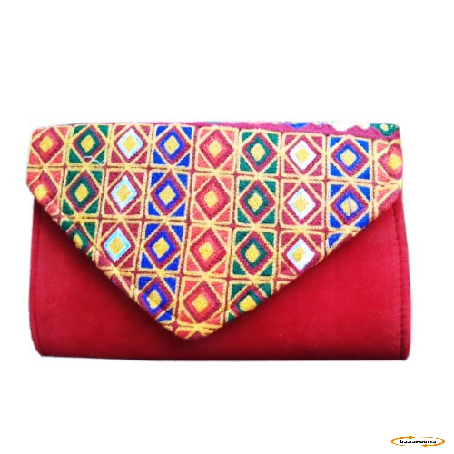 Beautiful women's wallet. It is made of high-quality material in red color and designed with zari.