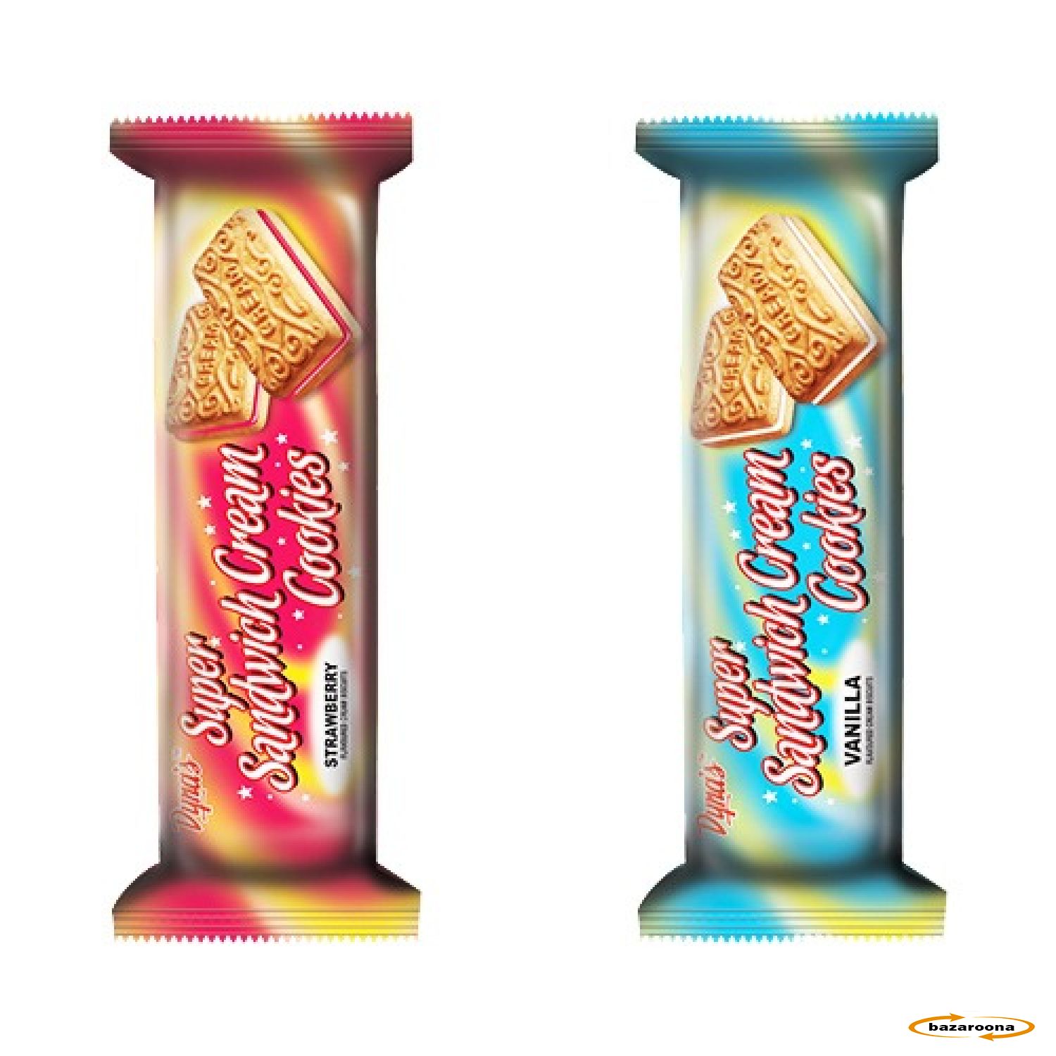 Super Sandwich Super Cream Cookies is a perfect biscuit for snack time. It is made of high-quality materials that are healthy and beneficial with five different flavors; Lemon, Orange,Chocolate, Vanilla and Strawberry
