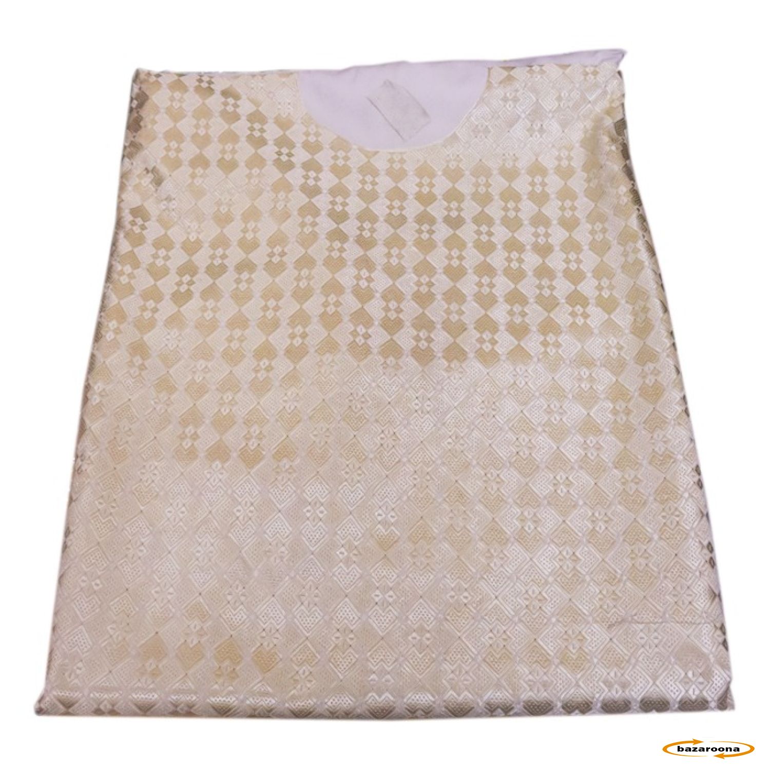 Traditional Afghan Men's Embroidered Khamak Design Cloth with yellow color khamak and white fabric. These products are made of high-quality khamak and designed in Hazaragi traditional designs.