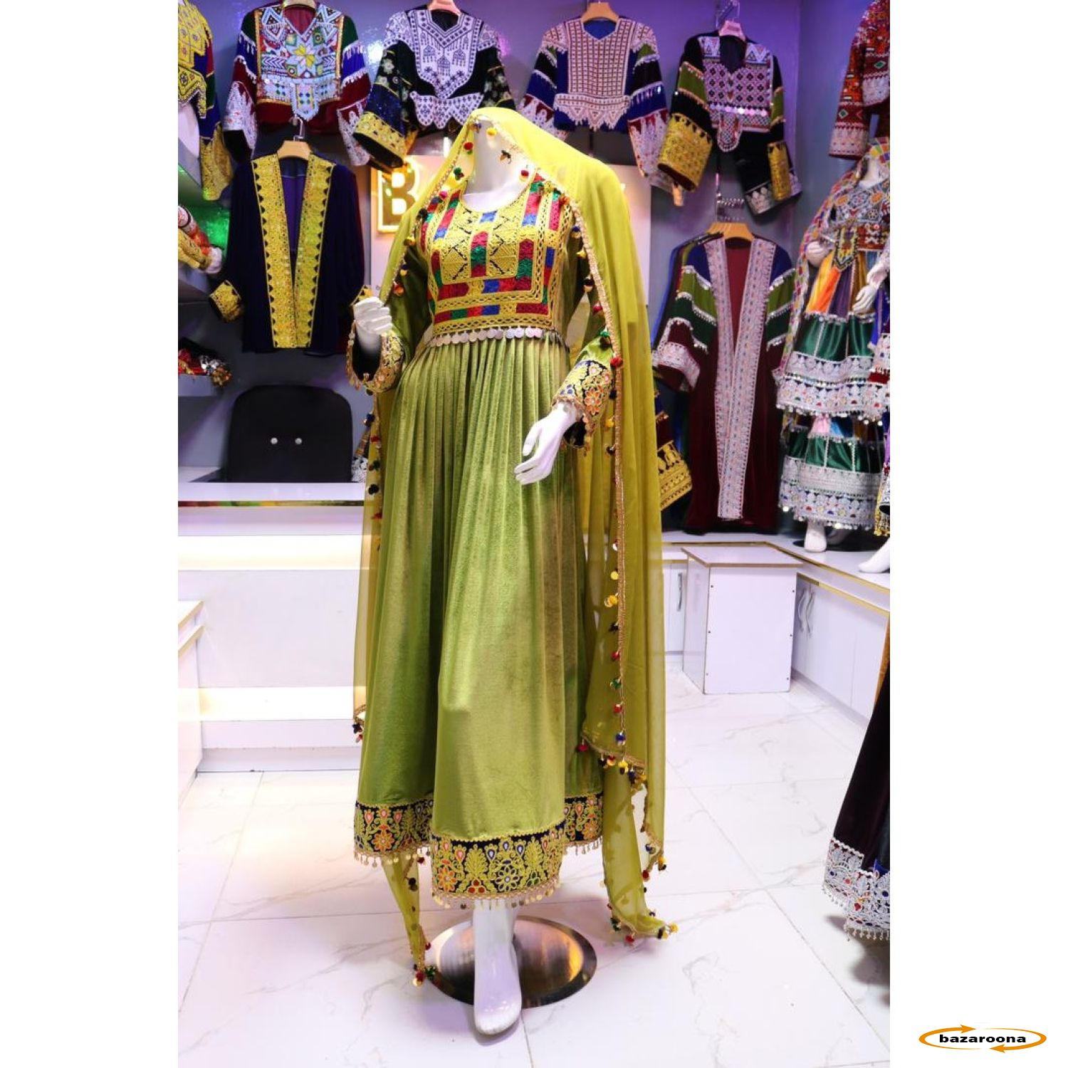 Modern and stylish Velvet Afghan shirt for women. These clothes are made of high-quality fabrics and designed with beautiful flowers.