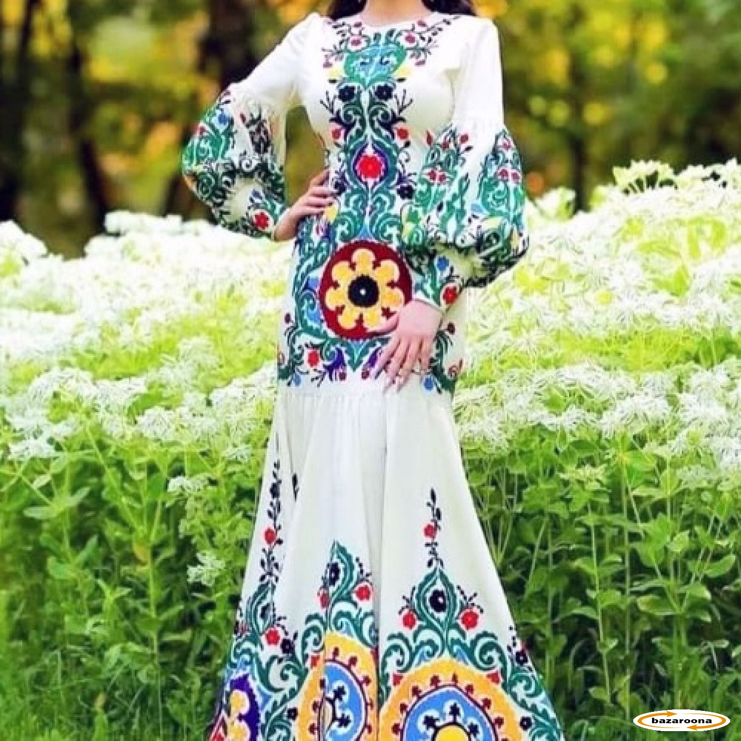 Full Flowered Tajiki Clothing is a beautiful floral women's clothing that is full of woven flowers in its front. These clothes are made of high-quality material and designed in new and modern designs for stylish women.