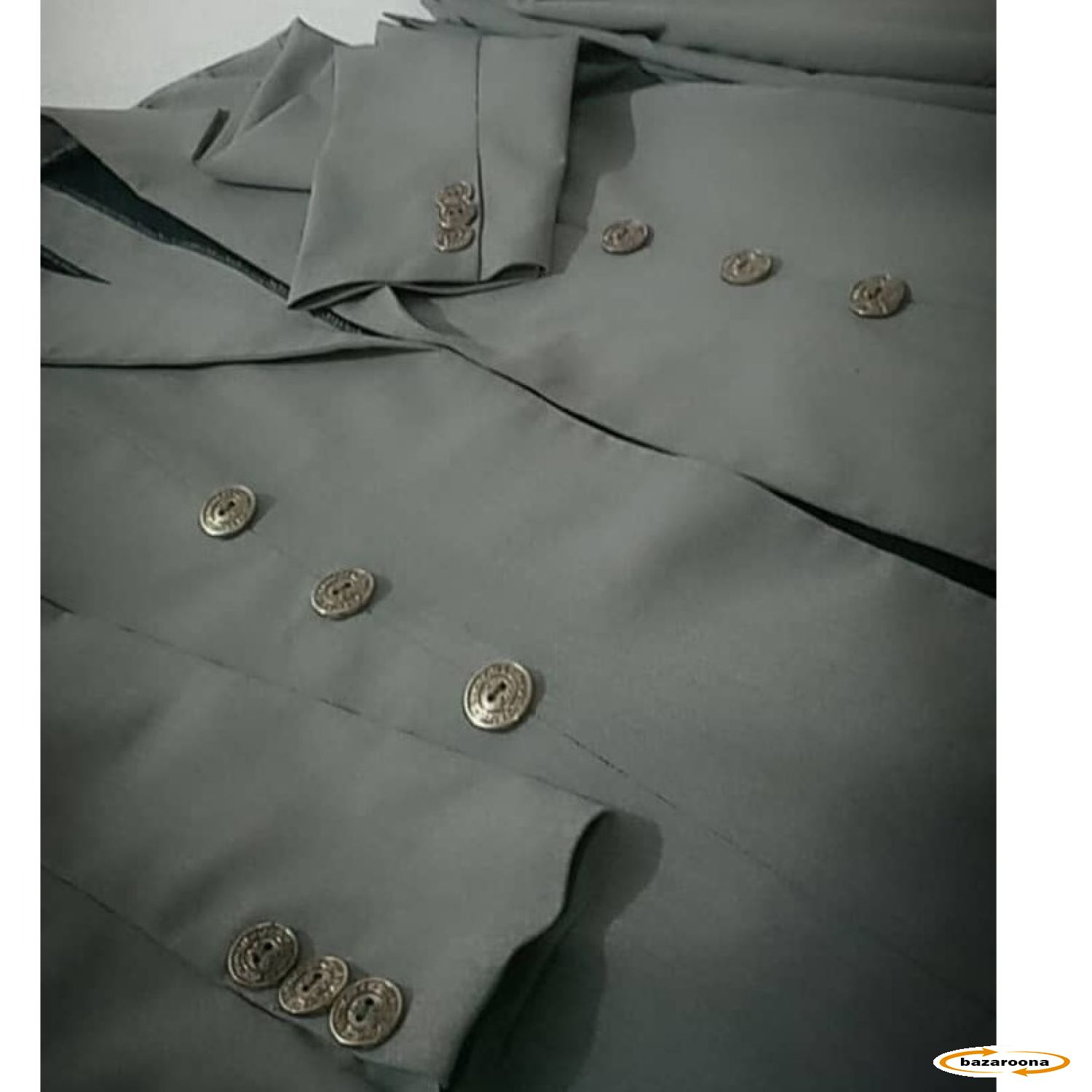 This elegant women's suit from Kakh Shik Poshan features a sleek and sophisticated design. The suit includes a double-breasted jacket with stylish metallic buttons and matching trousers. The jacket has a classic lapel collar and is tailored for a refined fit, making it ideal for both professional and formal occasions.